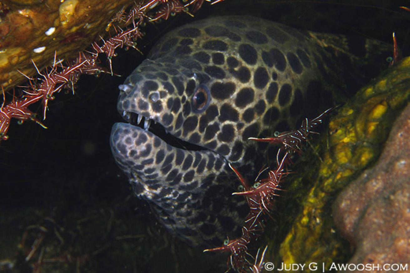 This was a huge eel, sharing its lair with an army of Hinge Beak shrimp