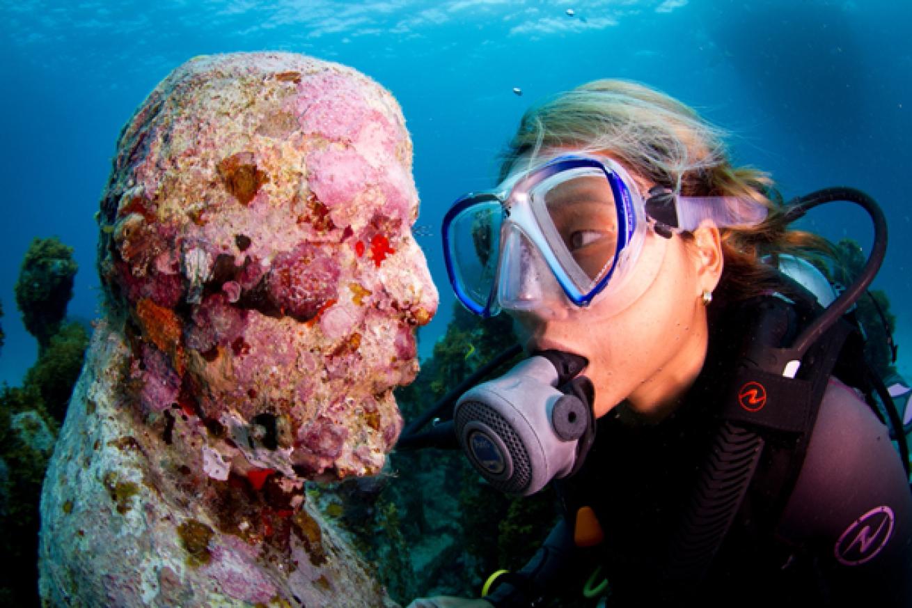 Jason de Caires TaylorA diver gets up close and personal with a sculpture from "The Silent Evolution" installation at MUSA.