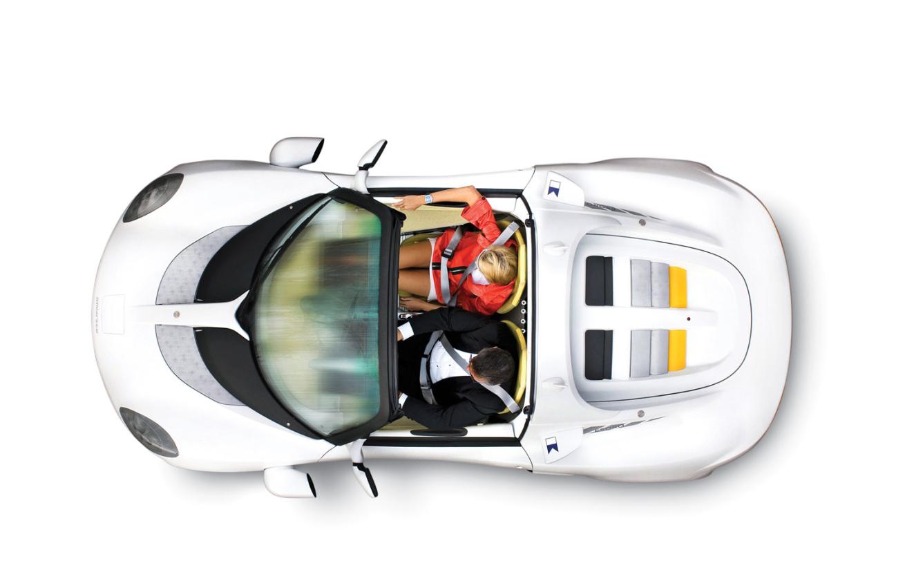 Courtesy Rinspeed.comThe drop-top allows divers to exit quickly if needed; the car automatically ascends if the driver evacuates his seat.