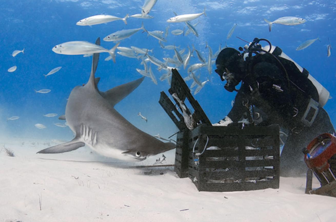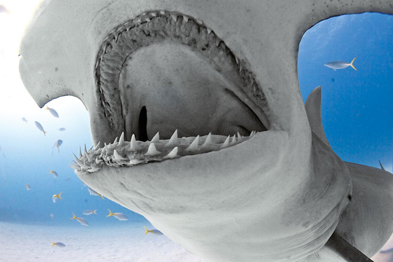 Bill FisherHand-feeding hammerhead sharks in Bimini allows photographers to capture open-jaw photos of the apex predators.