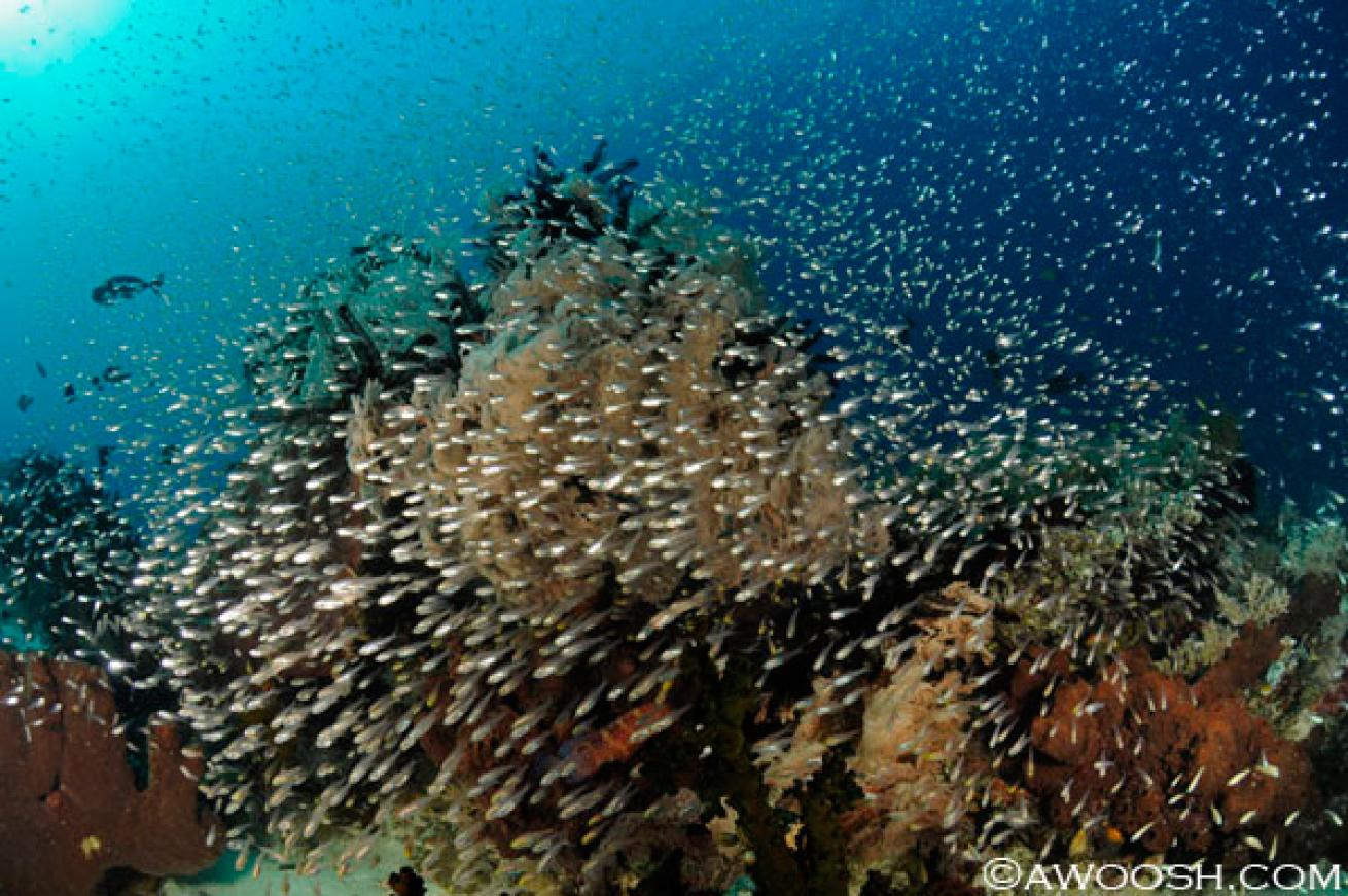In addition to its original intention to protect the endemic Komodo dragons, Komodo National Park has also become a marine-protected area. Although there are ongoing issues with poaching within the park, including highly destructive blast fishing in some locations, the waters are for the most part wonderfully fishy. Large schools of fish are viewable on many of the dive sites.