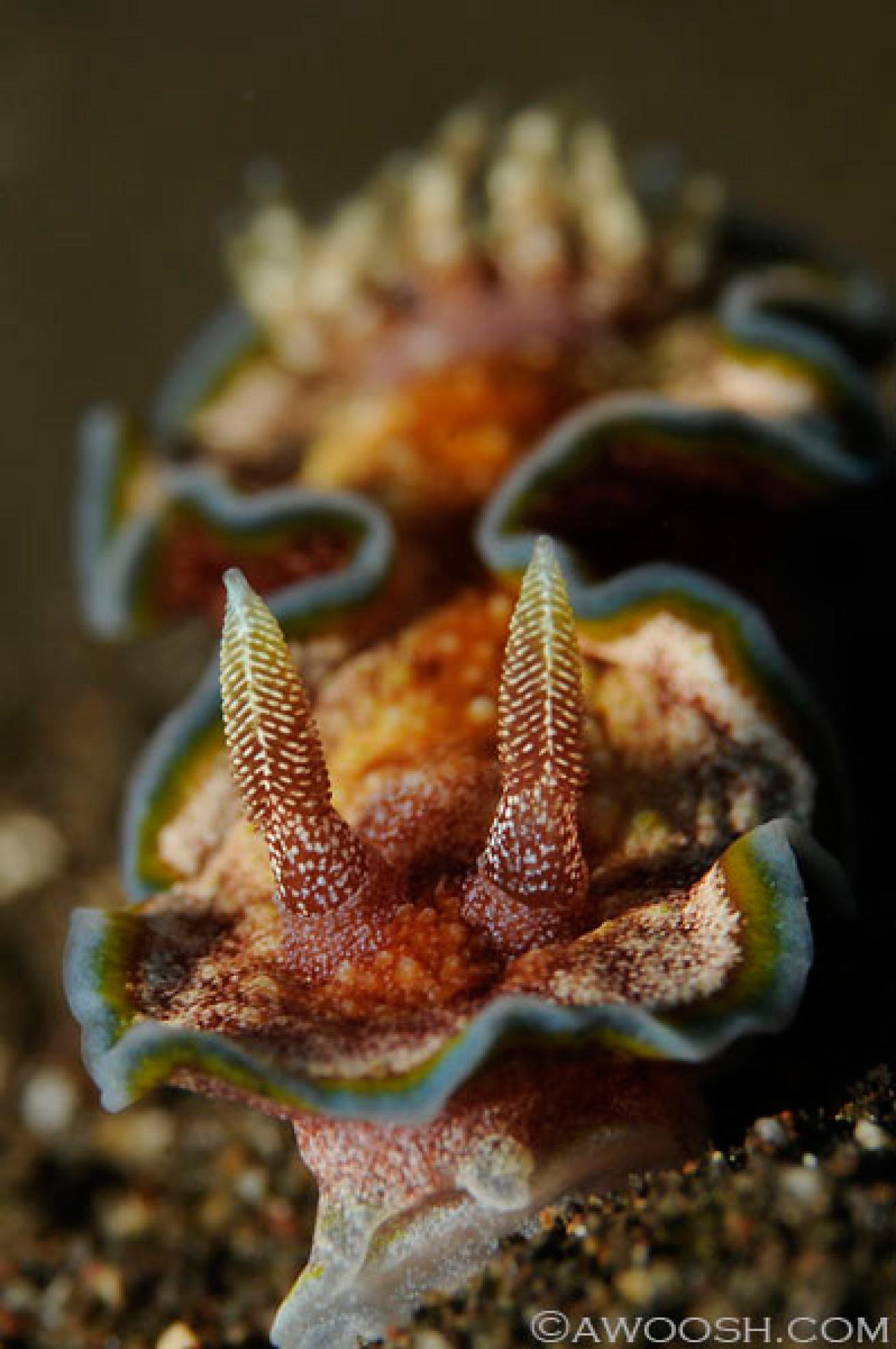 With all the beautiful and fishy reefs, it is tempting to just hang back and soak in the big picture, but Komodo’s rich and varied macro life is worth focusing in on. This girdled glossosodoris nudibranch (Glossodoris cinta), which grows up to about 2 inches long, is just one of dozens, if not hundreds, of varieties of nudibranchs that can be spotted here.