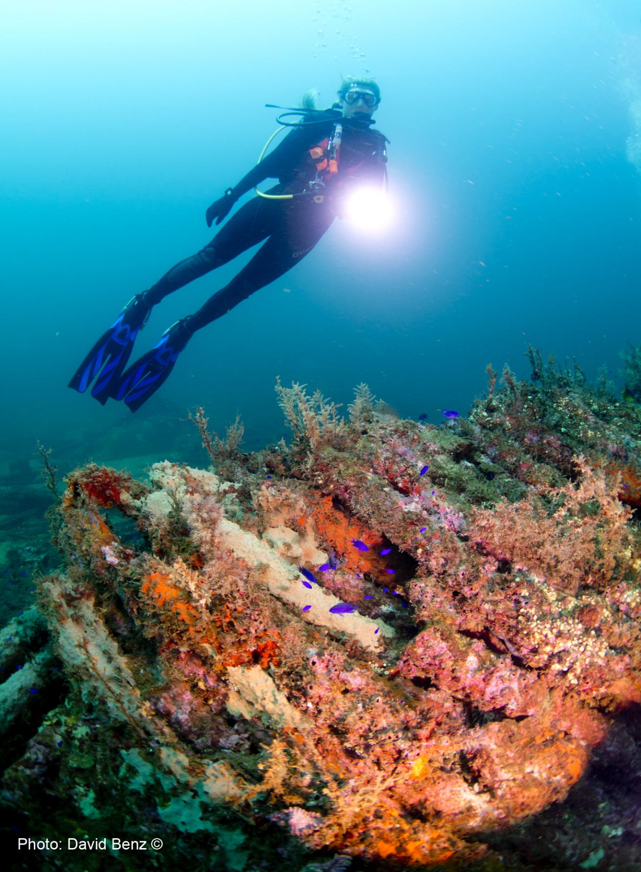 David BenzThis 143-foot-long former fleet tug was purpose-sunk in 2000.