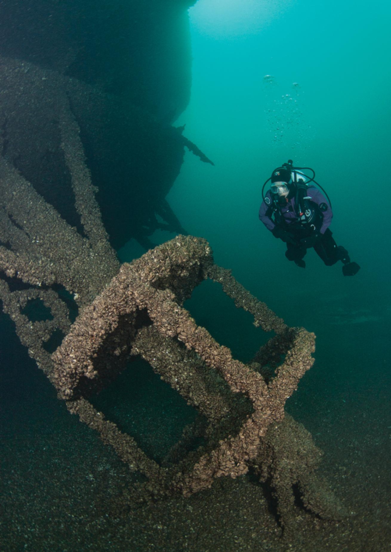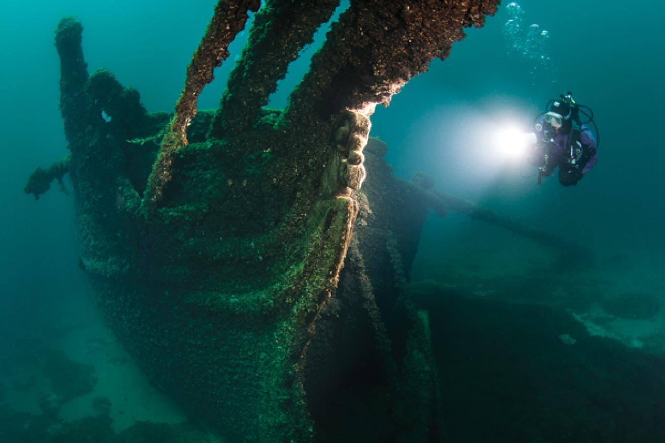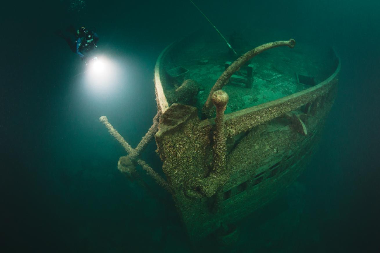 Located at the northern tip of Michigan’s Lower Peninsula, the Straits of Mackinac is home to the Mackinac Bridge, the third-longest suspension bridge in the world. While many travel to the area for a ferry ride to Mackinac Island or to explore the rural expanses of the Upper Peninsula, scuba divers have earmarked it as a premier shipwreck destination.