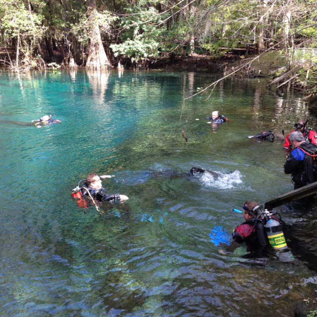 Divers check out the equipment at the DUI Demotour event held at Florida's Manatee Springs State Park.
