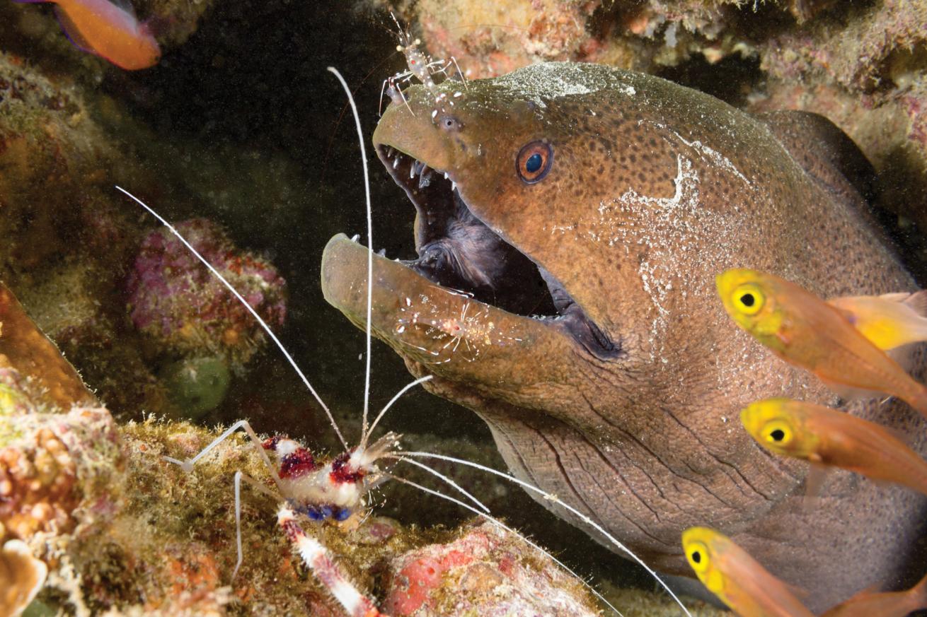 Michele WestmorlandA giant moray rules its world at Limbo Gapang.