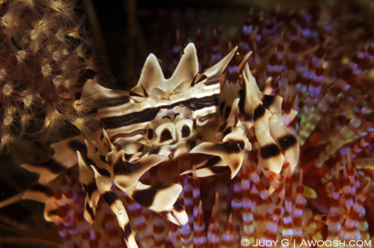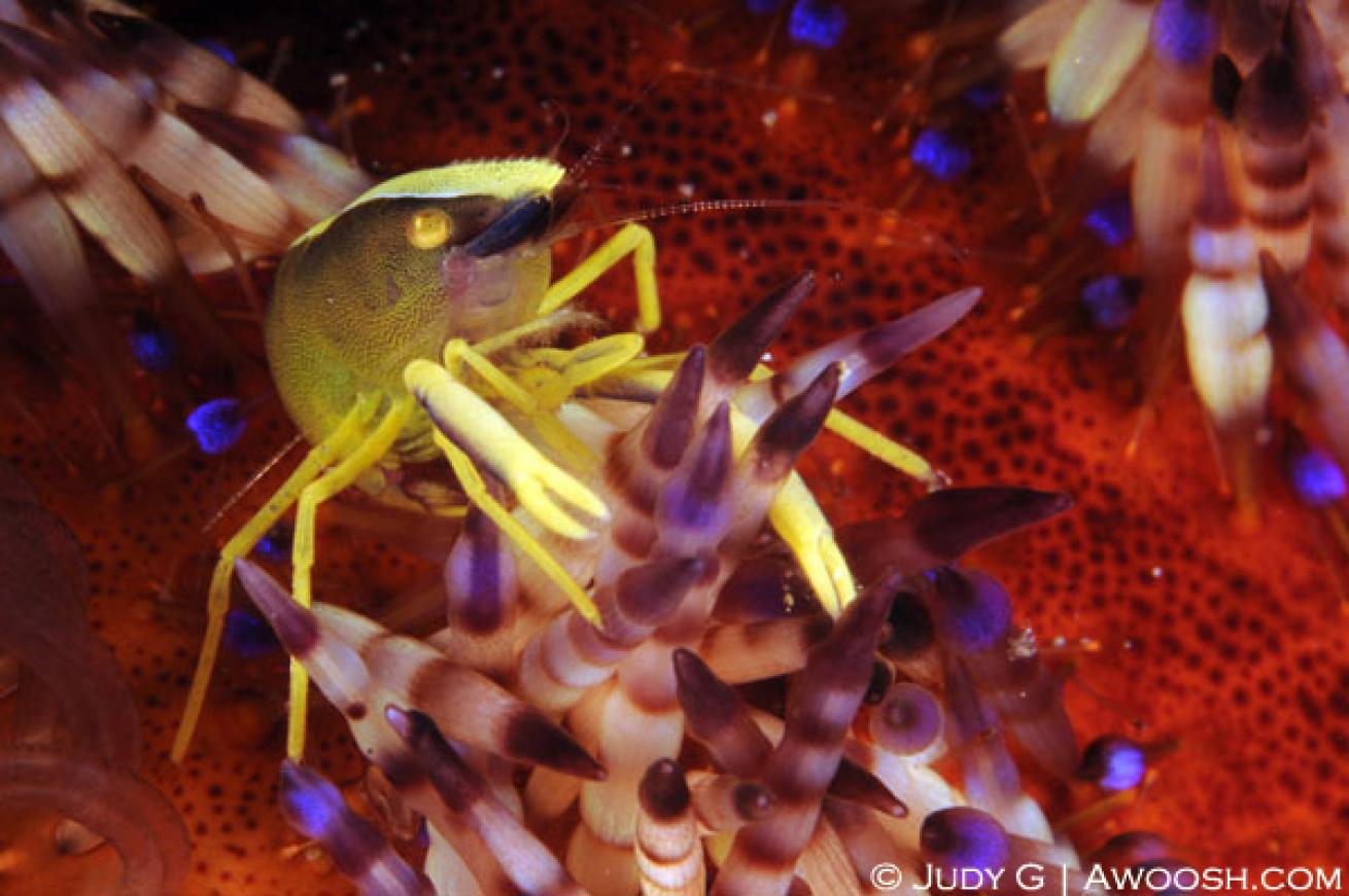 Another fire urchin-dwelling critter, these little shrimps hide among the colorful (and toxic!) spines.