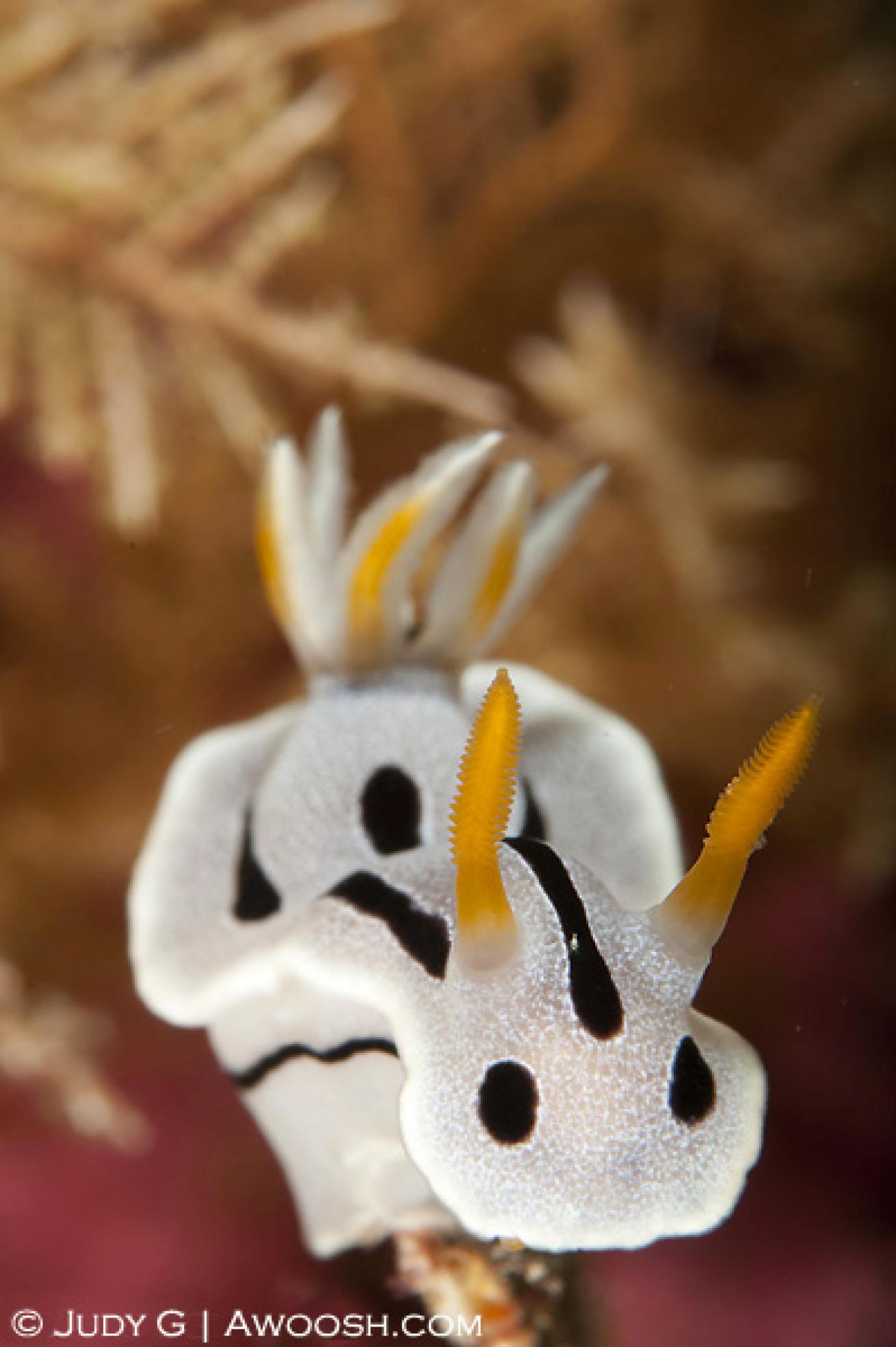 This is a fairly common variety of nudibranch. From a distance, it just looks like a bit of white on the reef, but when seen up close, the amazing detail becomes apparent.
