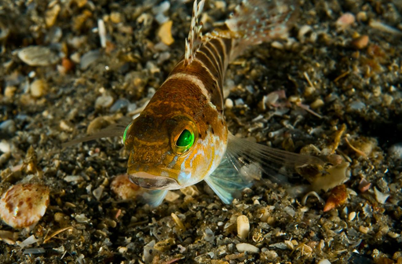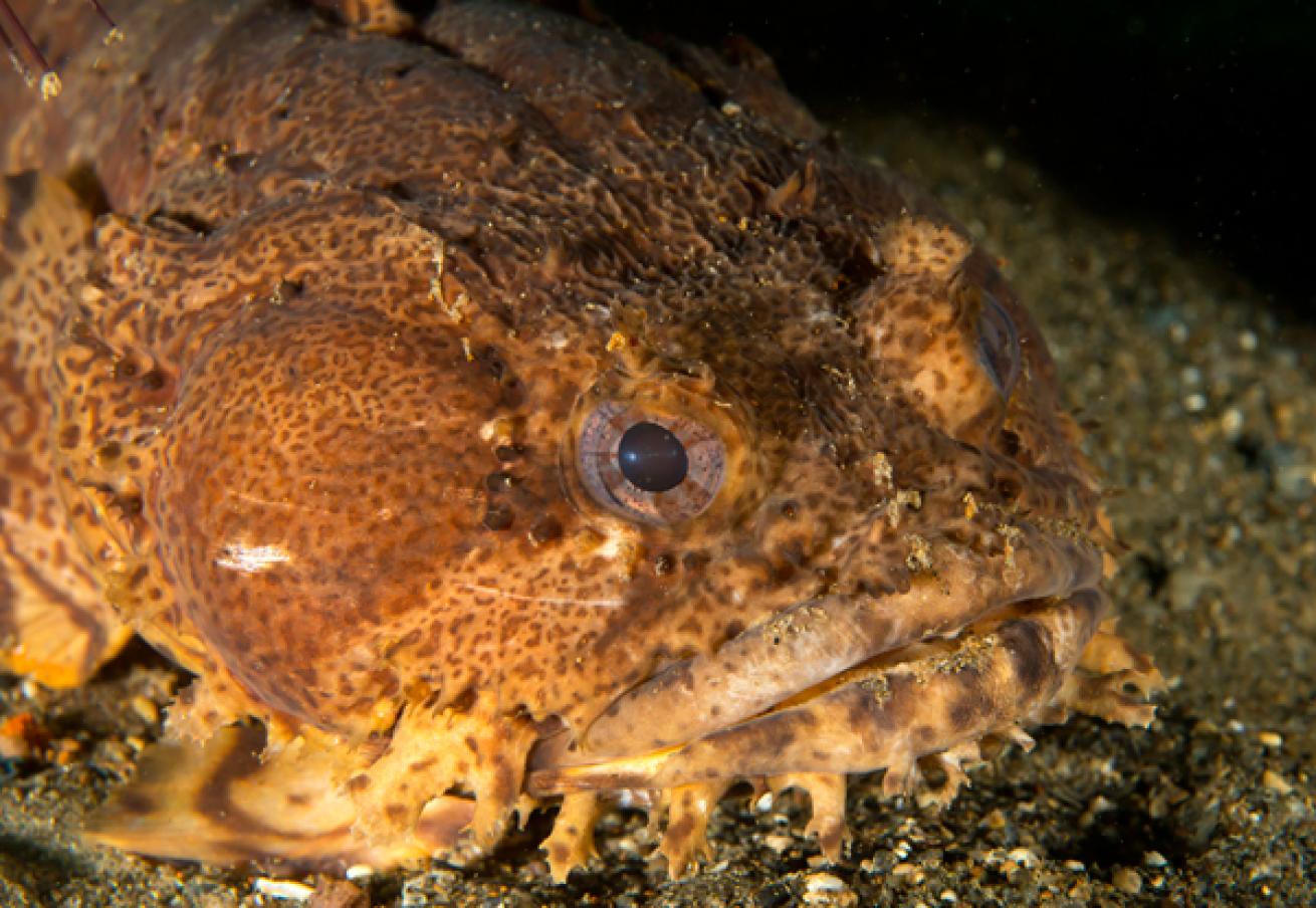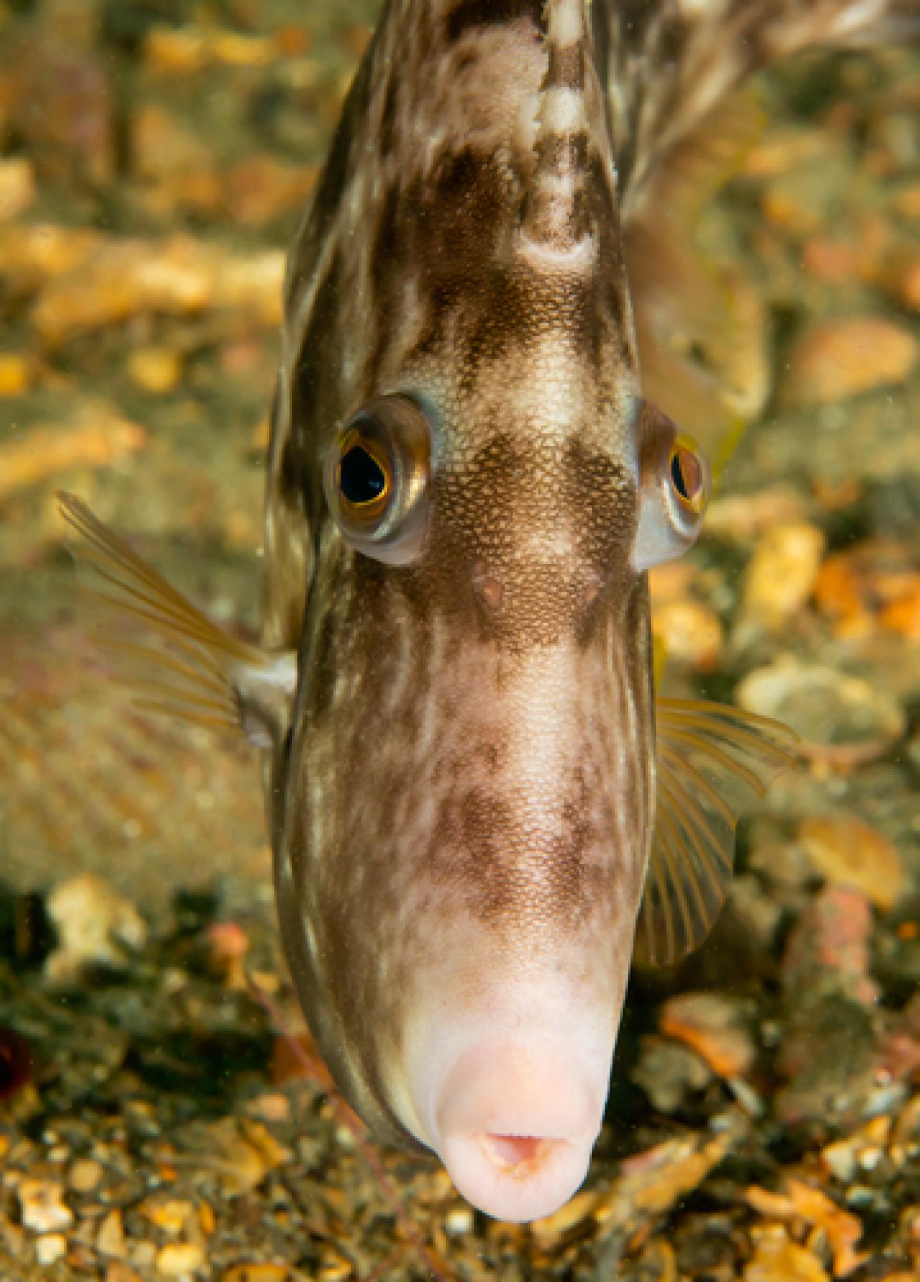 Oyster toadfish, masters of camoflage, lie motionless in wait for unwitting prey.