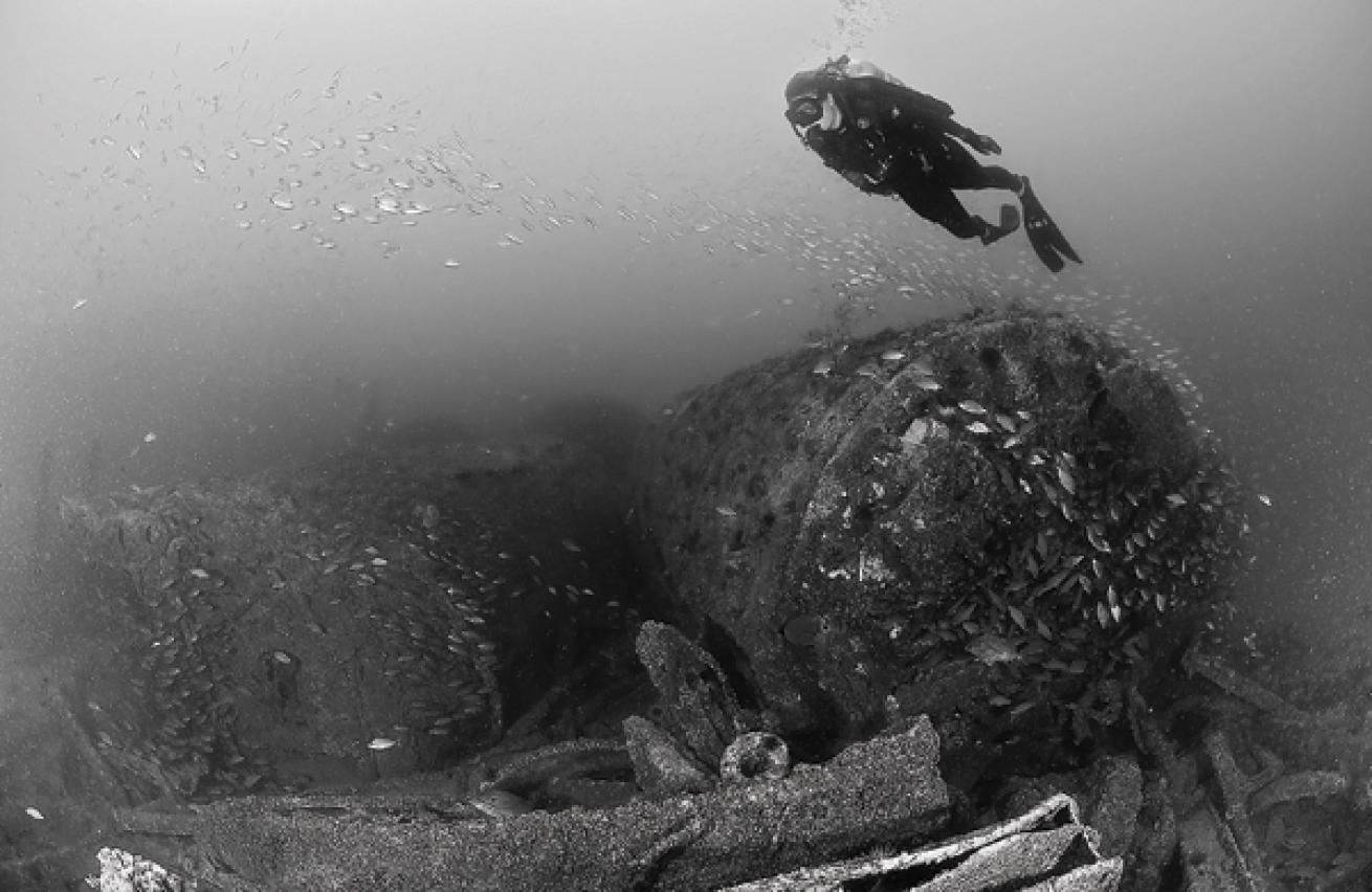 Michael GerkenGiant boilers remain on the wreck of the USS Schurz