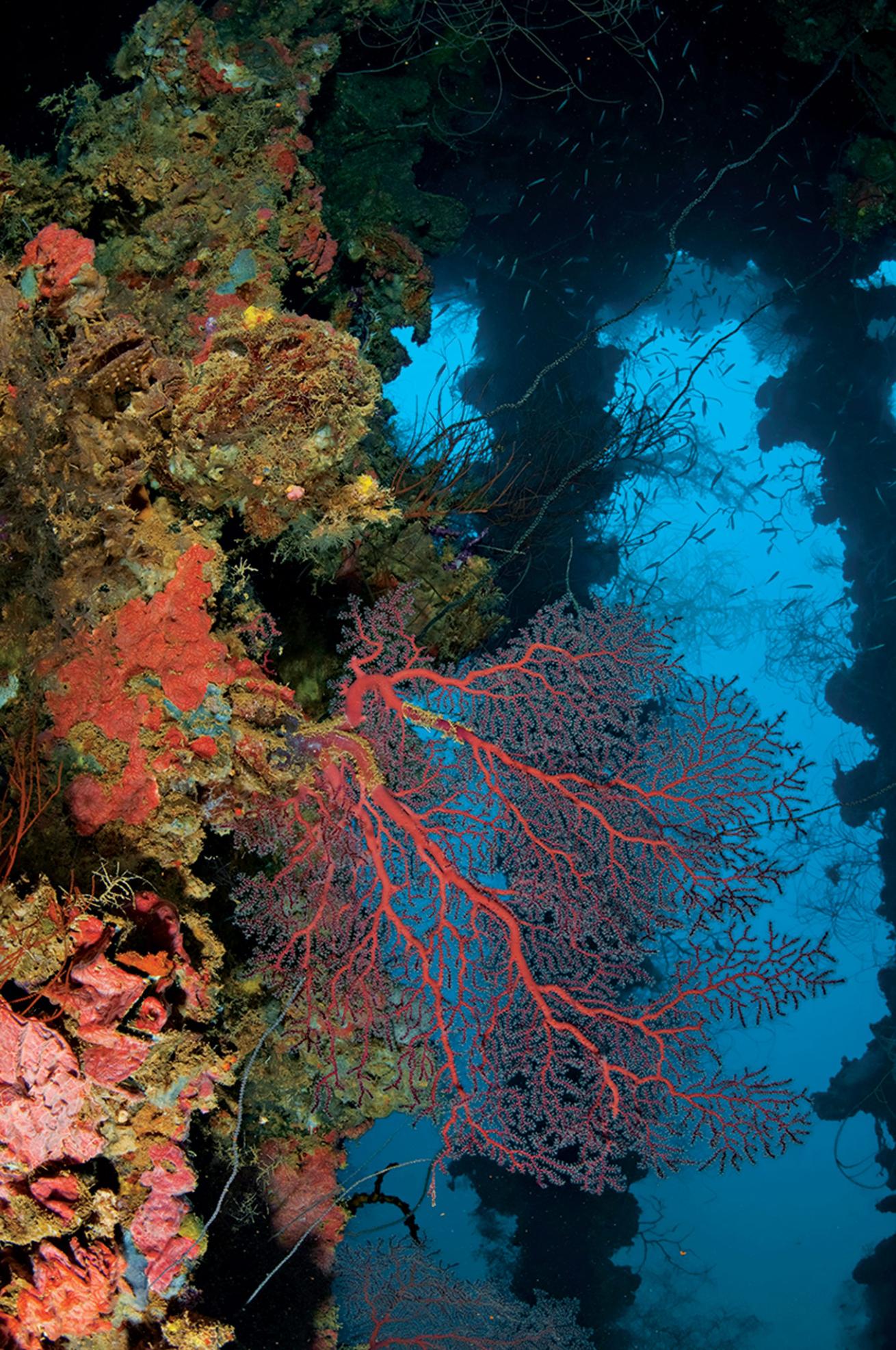 Ethan GordonIn the forward holds, the Yamagiri Maru's beams are covered in colorful sea fans, whips and sponges.