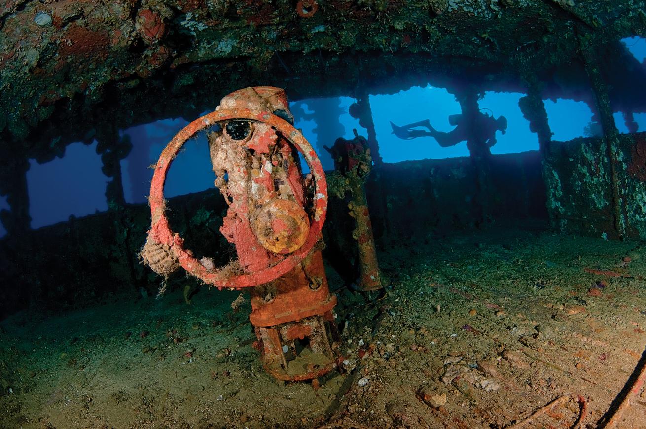 Ethan GordonThe bridge of the Nippo Maru is one of the Truk Lagoon's best-preserved control rooms.