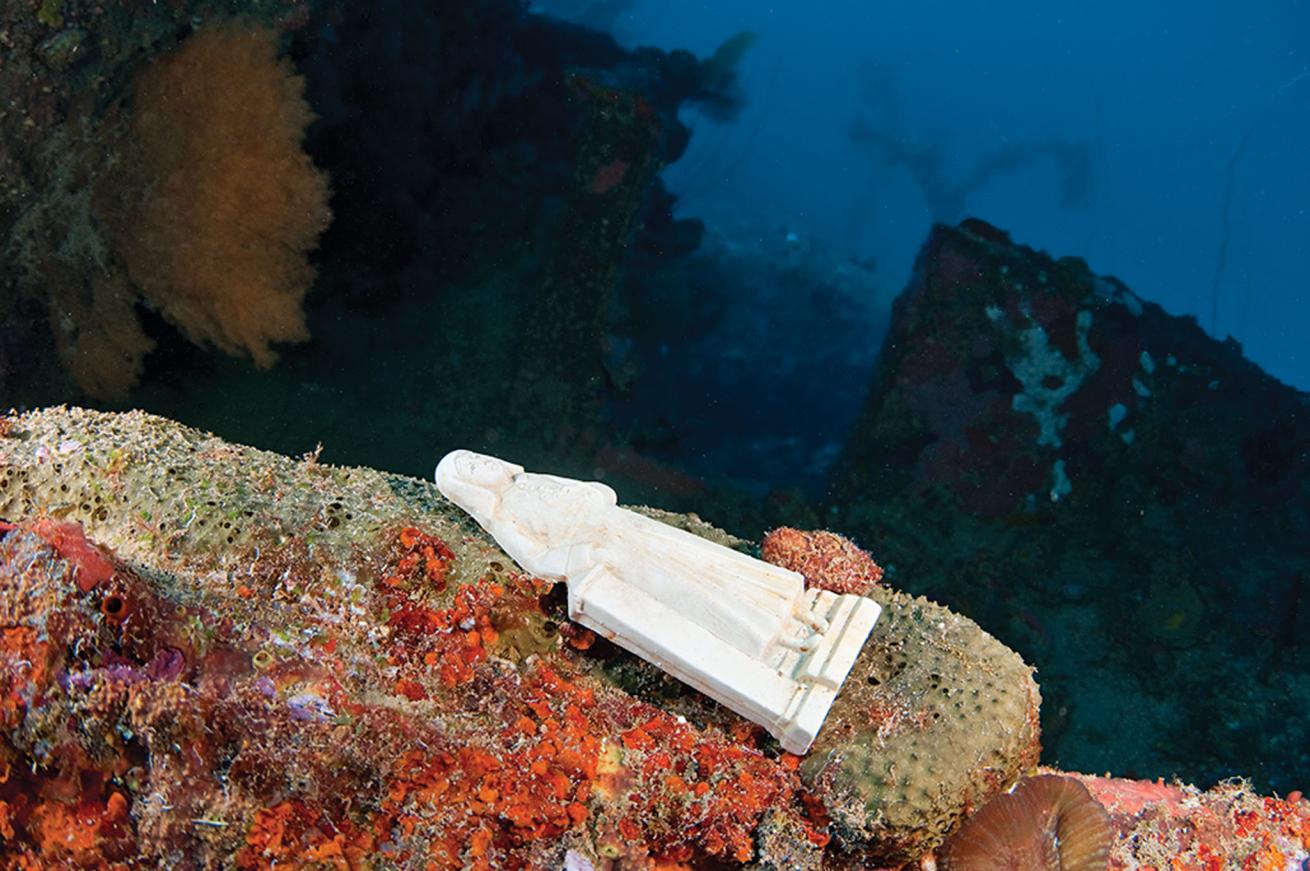 Ethan GordonTruk Odyssey guides found this statuette of the Virgin Mary in a forward cargo hold on the Nippo Maru.