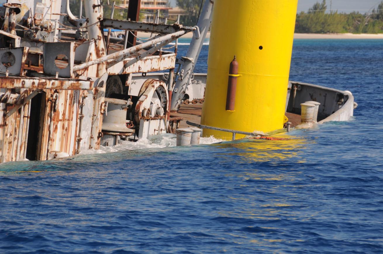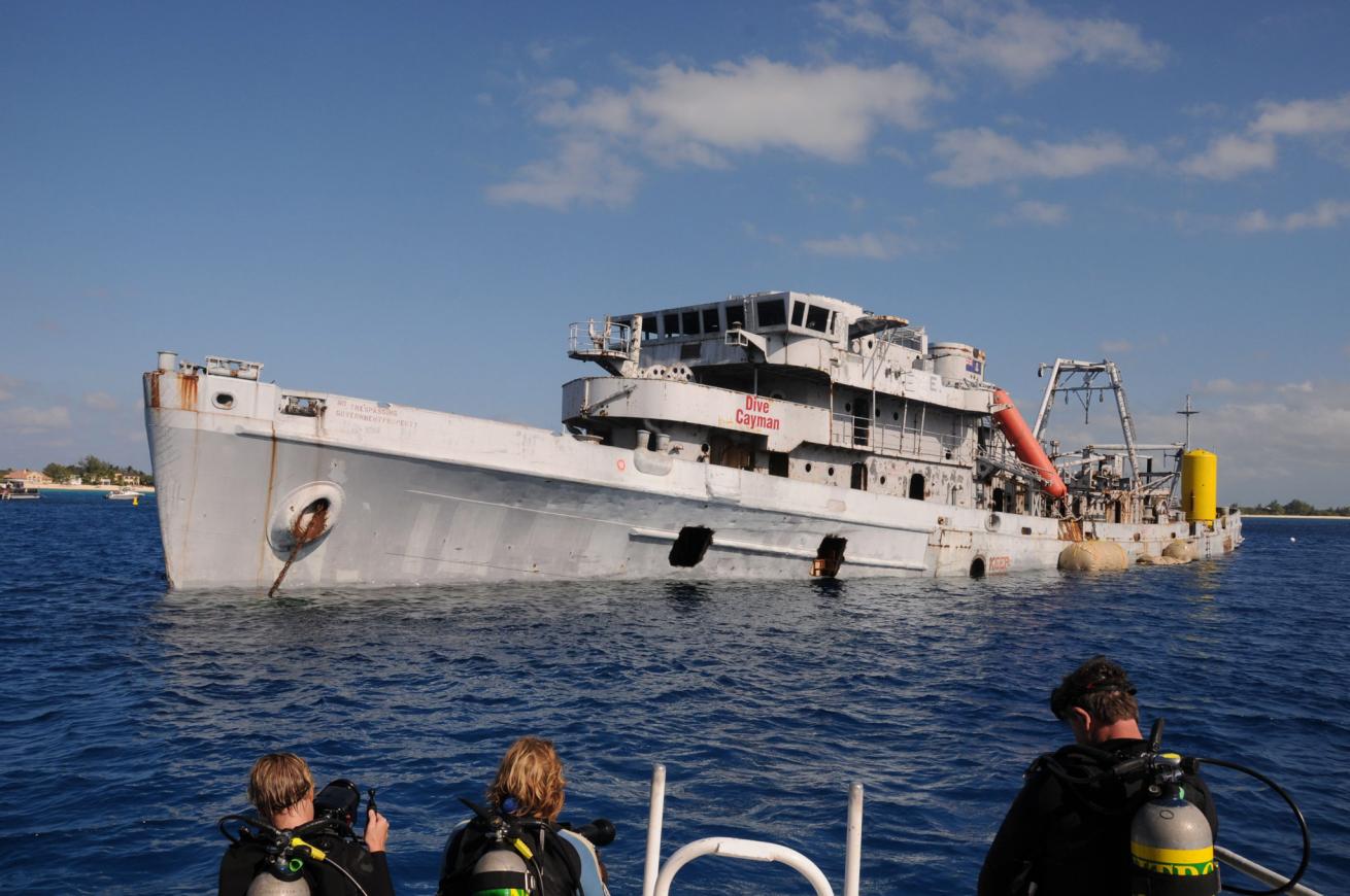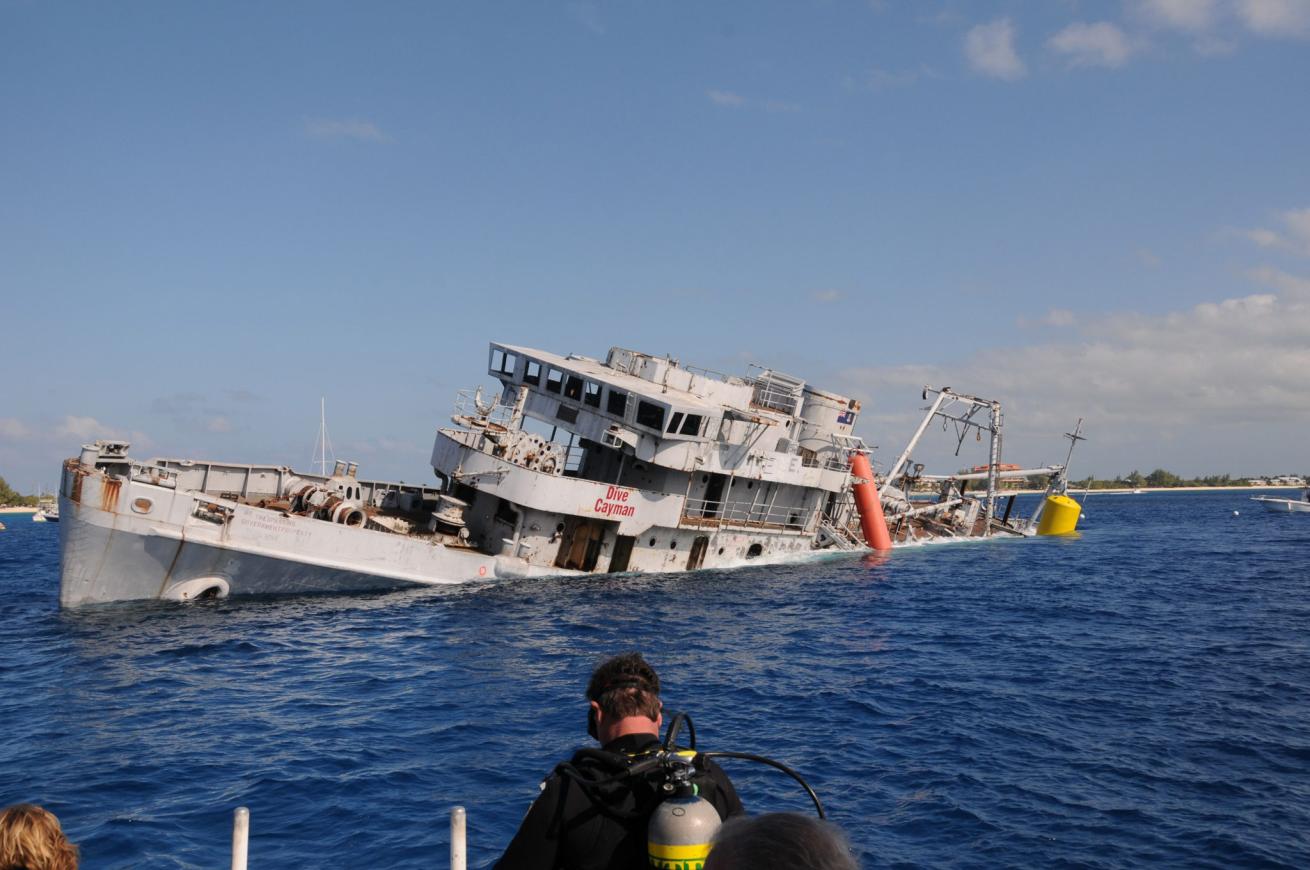 The 251-foot-long, former submarine rescue vessel was scuttled to create an artificial reef off the northern end of Seven Mile Beach on the west side of Grand Cayman.