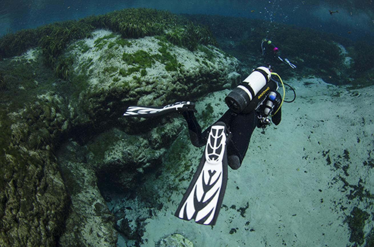 ScubaLab test season is still in full force, and this month’s session was a fin face-off. The team traveled to Alexander Springs in the Ocala National Forest to test 14 of the latest and greatest models by Aeris, Aqua Lung, Atomic Aquatics, Cetatek, Cressi, Mares, SCUBAPRO, Seac and Sherwood. We dived all variety of fins, from open-heeled to closed-heel to paddles to split, at all points on the price spectrum.