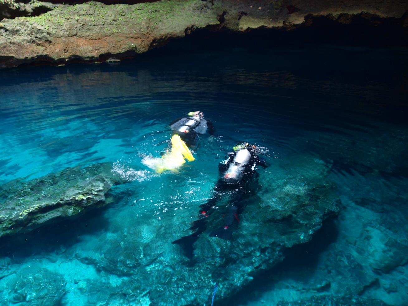 Scuba Lab director, John Brumm, and Scuba Diving magazine editors, Eric Michael and Mary Frances Emmons, recently took the plunge into the cool, dark waters of the spring-fed cavern to perform ergonomic testing of new scuba gear. Scroll through the gallery above for detailed reviews of the new gear (including new equipment from Aeris, Cressi, Scubamax, Zeagle, Seasoft and Ocean Reef).