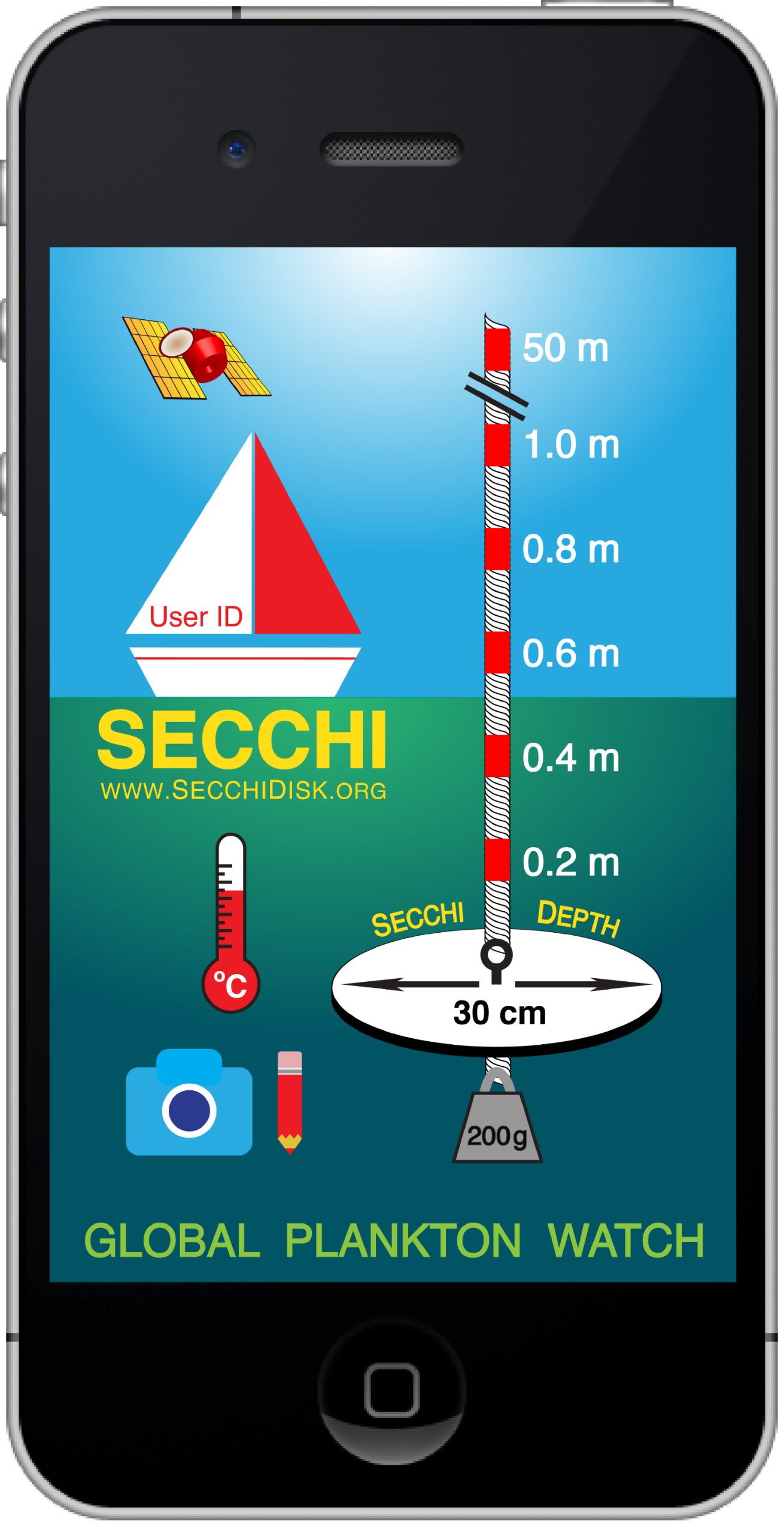 Secchi Disk AppThe Secchi Disk study engages all seafarers in a global citizen science study of the phytoplankton. In just two years the Secchi Disk study has become the world’s largest marine citizen science study. (You can see the progress by clicking on DATA.)