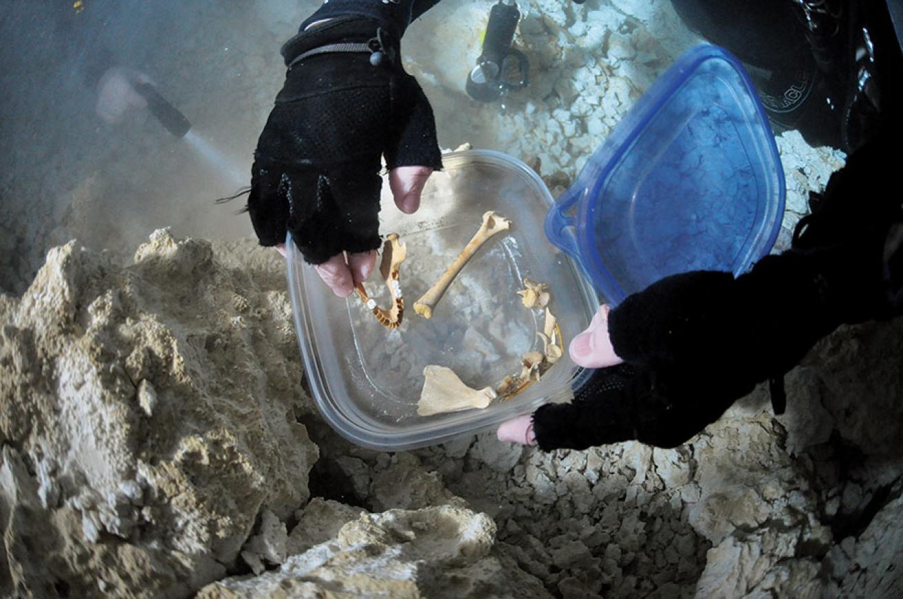 After hiking under the hot Caribbean sun in a 5 mm wetsuit, I relish the cool rush against my skin as I dunk into the cenote and don my gear. As we descend into the freshwater basin beneath us, we turn our dive lights toward the darkness.