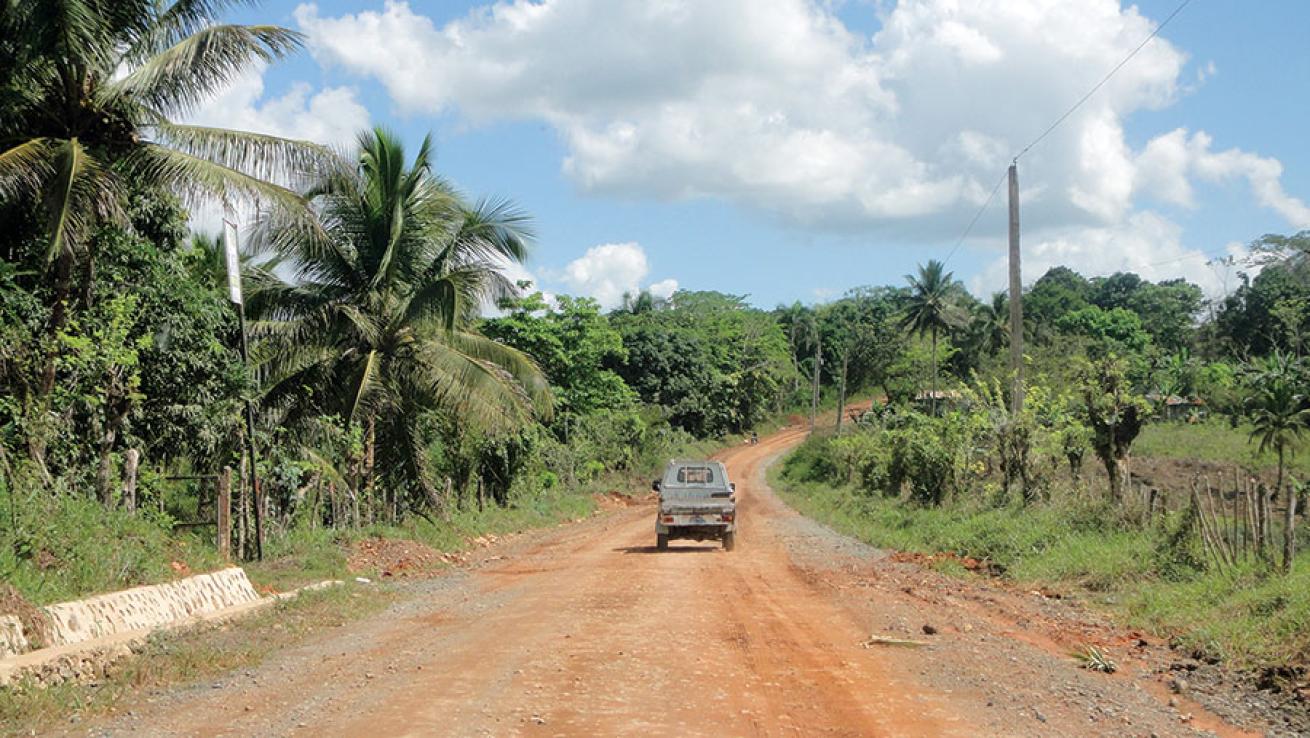We pull of the main road at a gate that opens onto a steeply inclined, rutted dirt track. As we bounce our way up the road, men materialize from the forest and approach the truck. Rath gestures for them to hop in back — once we arrive at the dive site, I understand why.