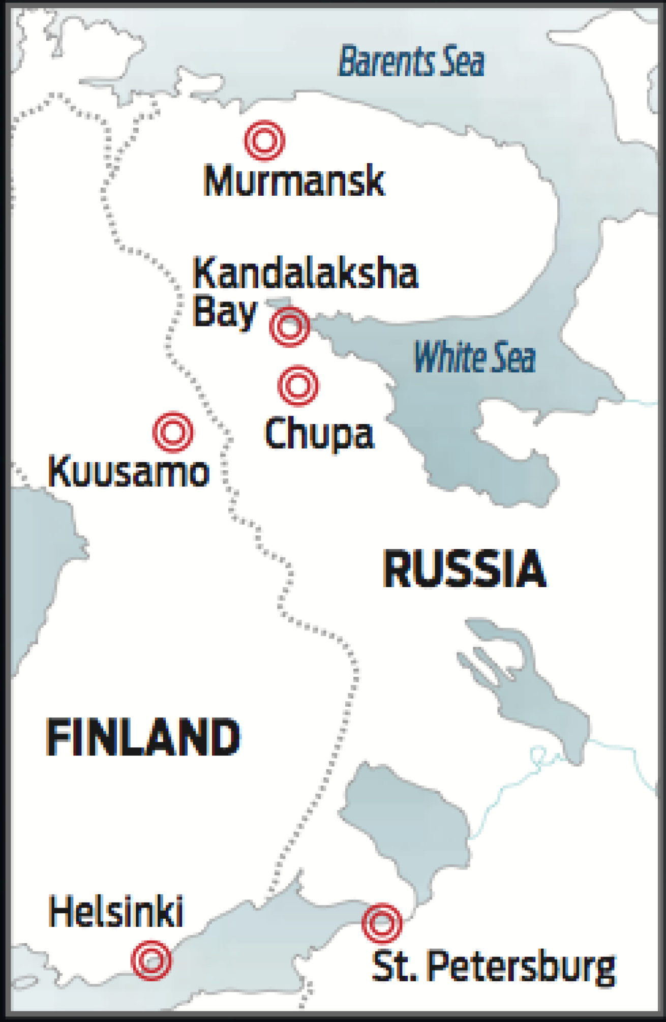 Getting There: International flights are to Helsinki, Finland; then take Finnair to Kuusamo, followed by an eight-hour transfer by car across the Finnish/Russian border to Kandalaksha Bay. You also can travel by train from Moscow or St. Petersburg to Chupa, a 27-hour journey, followed by a two-hour transfer by car to Kandalaksha.