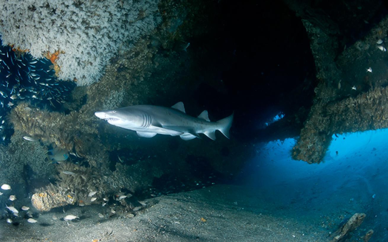 During the 2012 dive season, the Aeolus became home to approximately a dozen sand tiger sharks that took up residence inside the wreck. Divers returned day after day to swim right amongst the sharks in what became known as ‘Club Aeolus,’ North Carolina’s coolest shark lounge.
