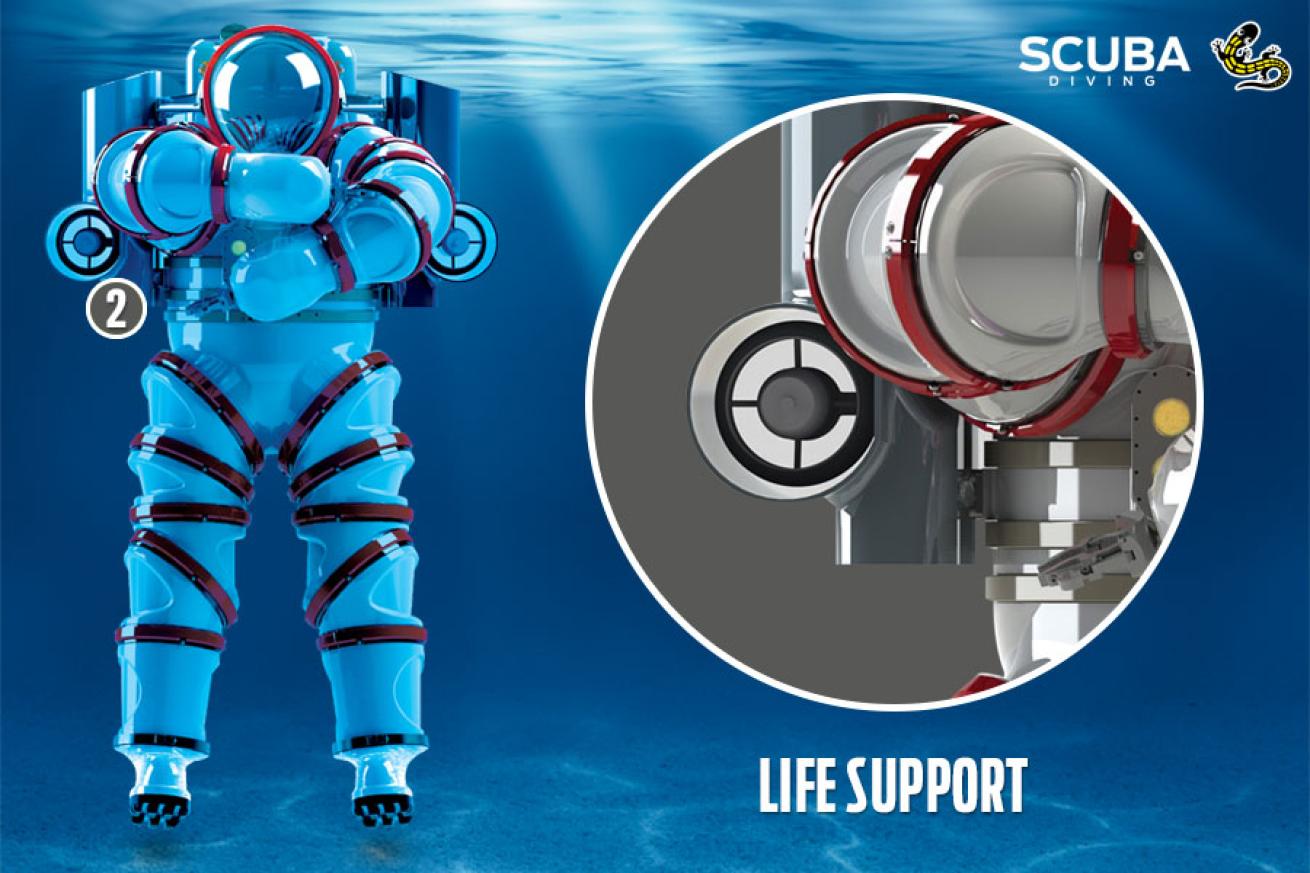 While a diver is underwater in the Exosuit, he is constantly monitored by a surface operator and has full communication capabilities via six intercom systems. Topside, the operator can see and hear everything the suit is experiencing, thanks to an attached high-definition camera that produces Blu-ray-quality video to boot.
