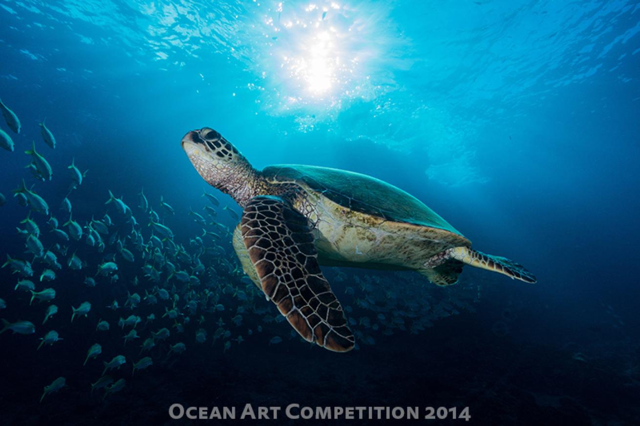 This green sea turtle photo took fourth place in the Novice DSLR category of the 2014 Ocean Art Photo Competition. See the full story behind the shot — and full list of winning photos — at Underwater Photography Guide's website.