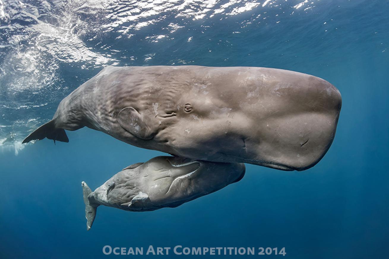 This photo of a sperm whale and calf earned an honorable mention spot in the Wide-Angle category of the 2014 Ocean Art Photo Competition. To read the story behind the shot — and see the full list of winners — go to Underwater Photography Guide's website.