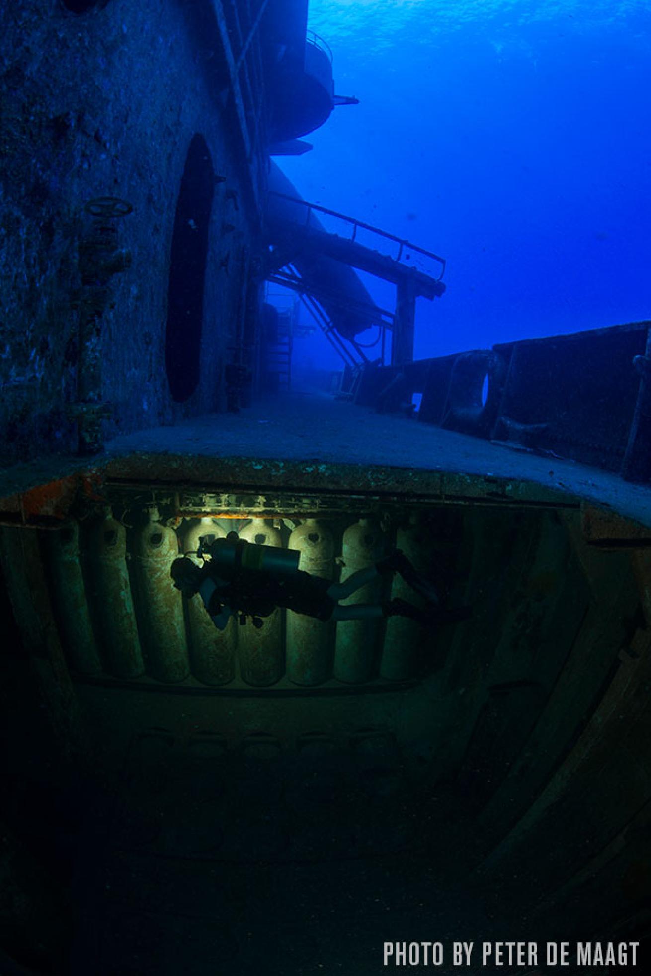 The Kittiwake wreck in the Grand Cayman is great for underwater photography. It is at a relatively shallow depth allowing ample time to take pictures. It also offers many different ways of capturing the wreck. One of the cargo bays offered the opportunity to take an underwater “split level”.