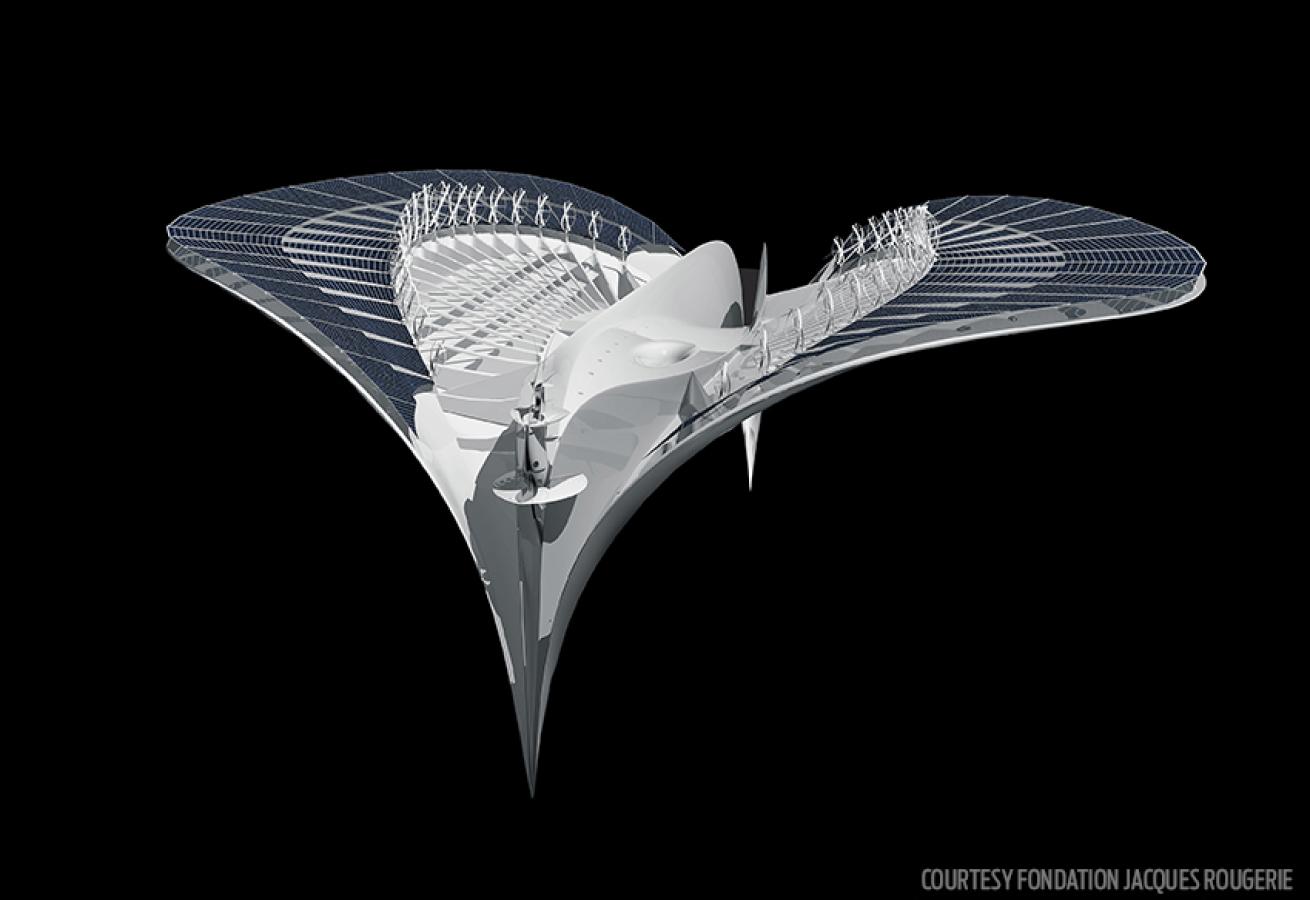 The mantalike design is inspired by the creator’s love for the ocean. “Another type of imagination is awakened in me as soon as I am underwater,” Rougerie told radio station France Inter in 2014.