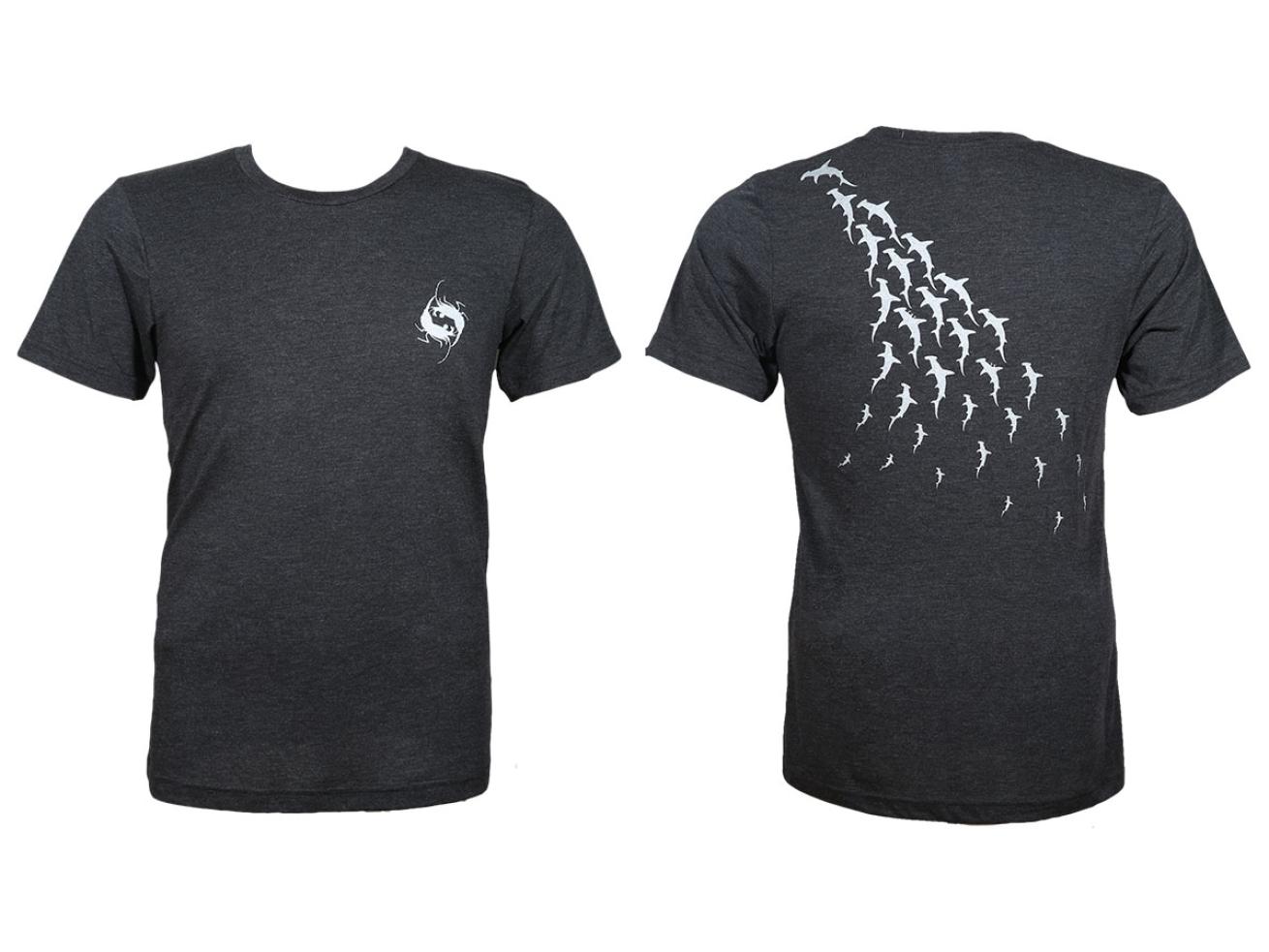 Prawno clothing incorporates fabrics made from post-consumer plastic bottles and recycled fabrics, and supports projects aimed at improving the conditions of our oceans. Hammers was inspired by a brief yet serendipitous encounter with a great hammerhead off of Cat Island, Bahamas. Hammers can be found schooling in a few places in the world, including Cost Rica, Galapagos, and Colombia. Printed by hand in North Carolina.