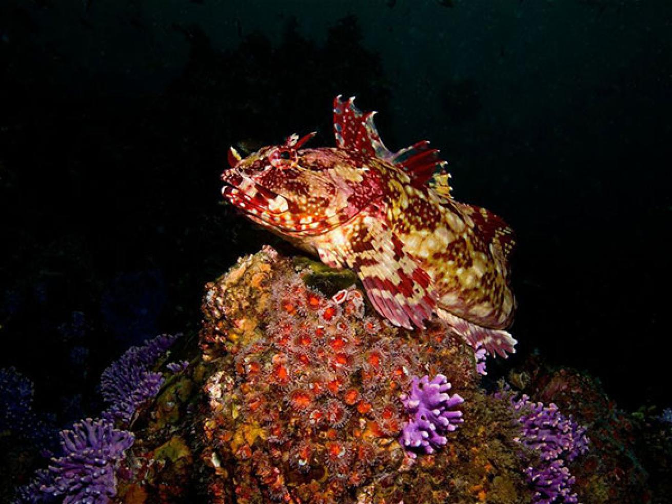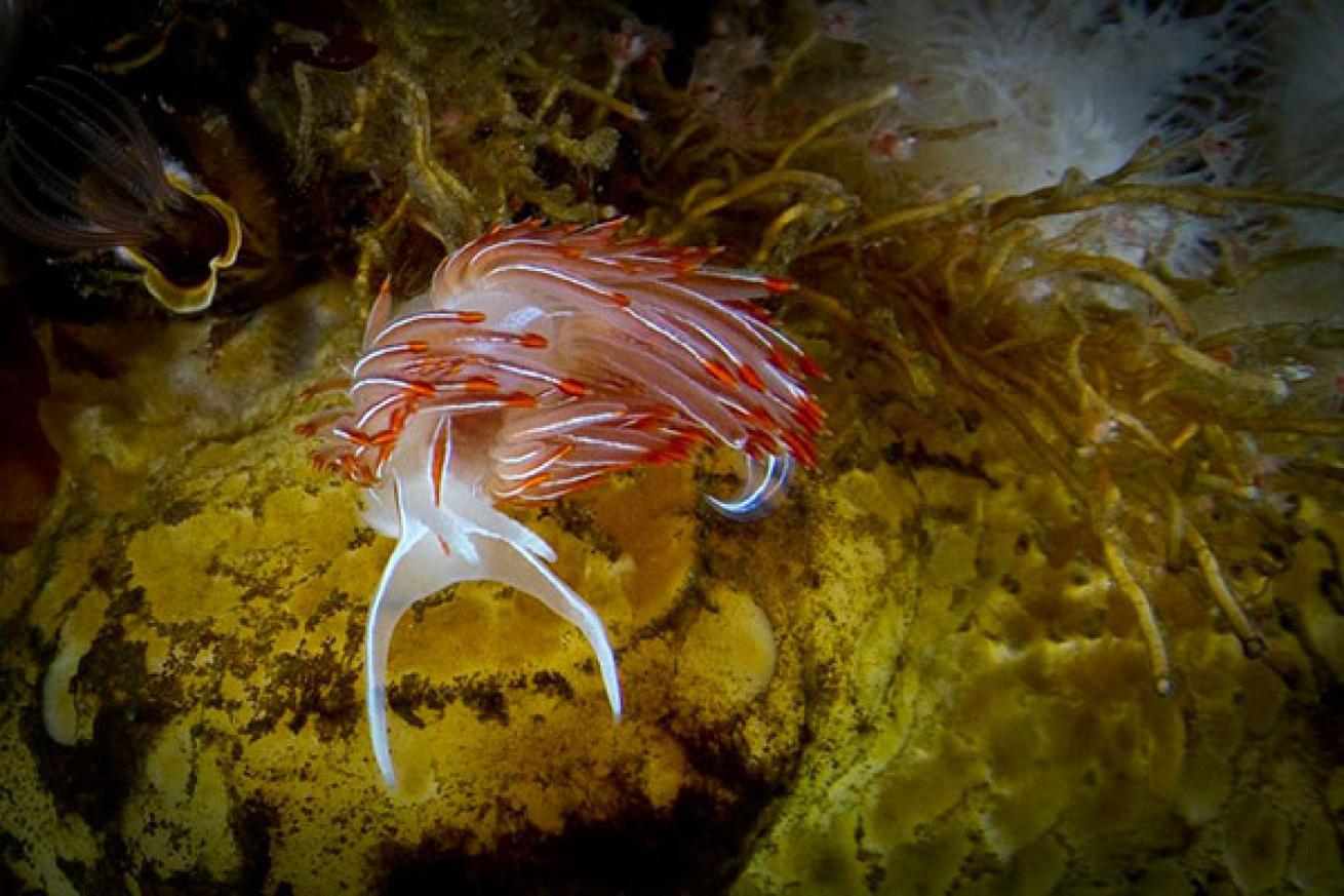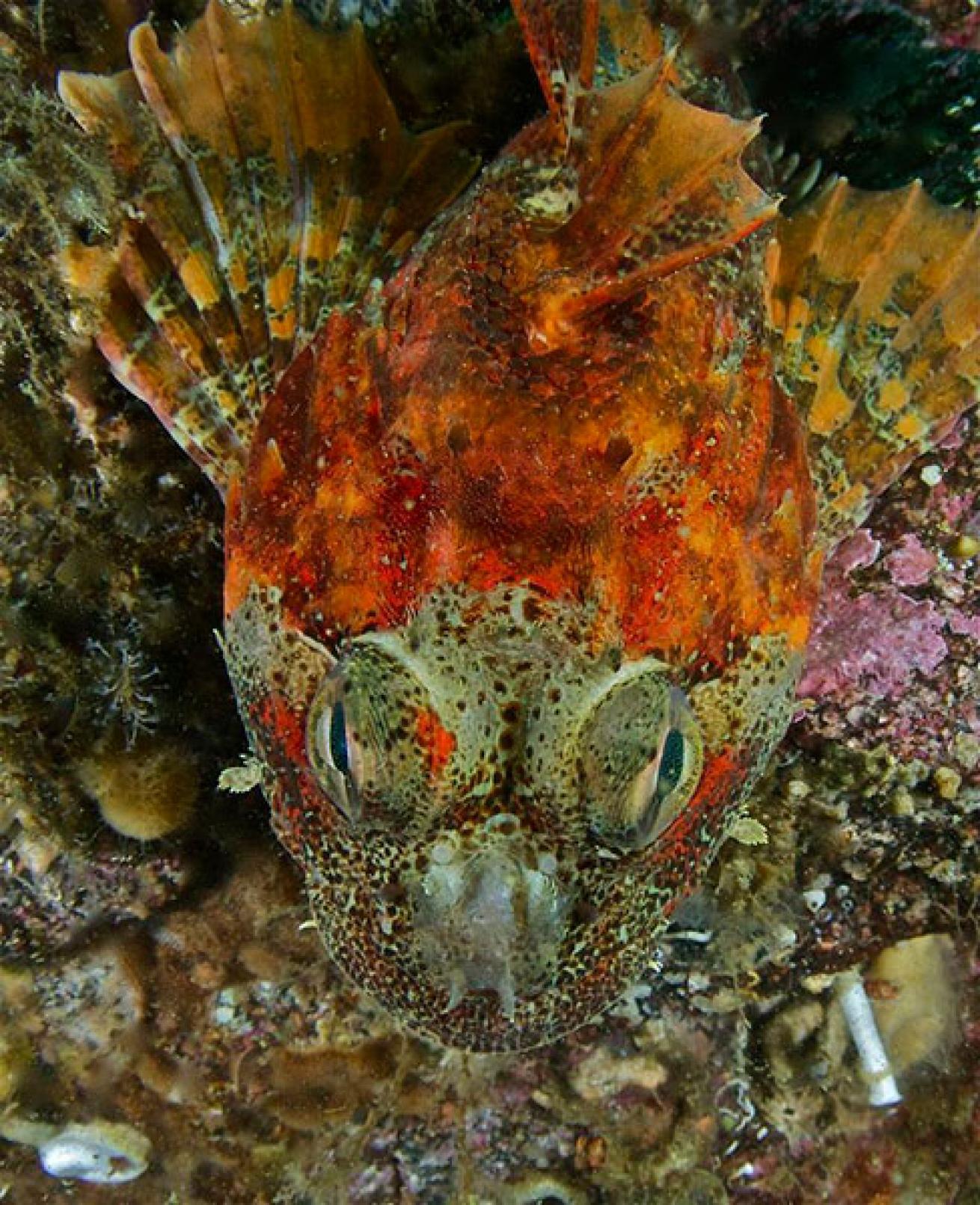 My subsequent dives were equally stunning. Steller sea lions swam along side us, occasionally mouthing a diver’s head to show him who was boss –– but considering these animals average about 1,500 lbs, there really wasn’t ever a question! Vibrantly colored nudibranchs were bountiful, and fish I’d never seen in warm water were everywhere: Red Irish Lords, sculpin, and decorated war bonnets kept this photographer busy on every dive. We even swam upon two king crabs in an amorous situation...they didn’t seem to mind.