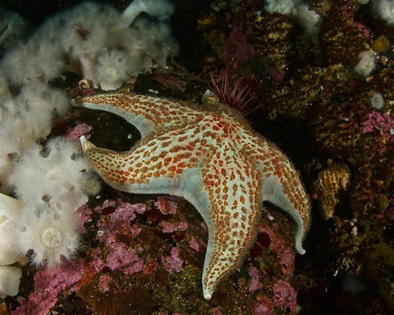 When we finally made our descent on that first dive, I knew I had made the right decision making this trip. The visibility wasn’t 100 feet--probably closer to 25 feet, but the things I saw in that 25 feet blew me away. The water is a captivating green, the kelp forests anchored to the bottom while climbing with their gas filled bladders which allow them to float to the surface, and more life than I ever expected to see. Giant plumose anemone averaging three feet high swayed with the current, and starfish of every shape, size, and color were everywhere. I watched in awe as a fellow diver –– very experienced in diving in this area –– played with a wolf eel as if it were a puppy. And my drysuit kept me dry –– and warm!