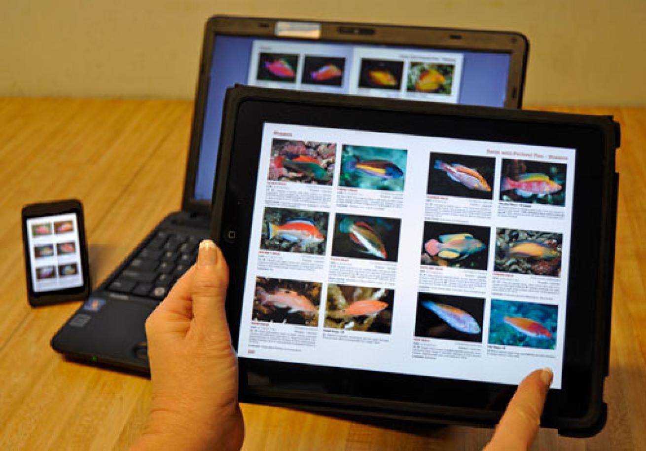 Description: Reef Fish Identification: Tropical Pacific is one of the largest, most comprehensive (and the most popular) fish identification books available. It is now available in digital format via the Blio eBooks app. It works “offline” if you download the app/book to your device before you go offline.
