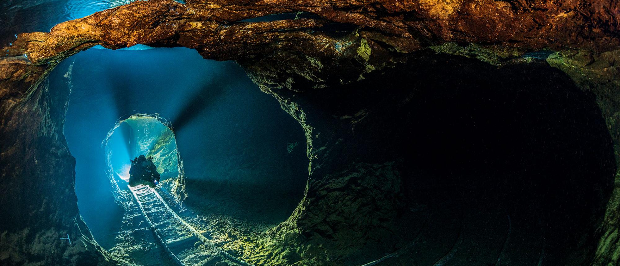 Divers must be in good physical condition. Carrying equipment down to the lowest level requires quite a bit of exertion. Headlamps are necessary for the walk through completely dark tunnels. Outfit yourself in the warmest undergarments you have, preferably with a heating system; good dry gloves are recommended. The slightly acidic, 37-to-41-degree-F water takes away any warmth very quickly. Bring a shoulder strap to carry your camera gear down the tunnels and stairs.