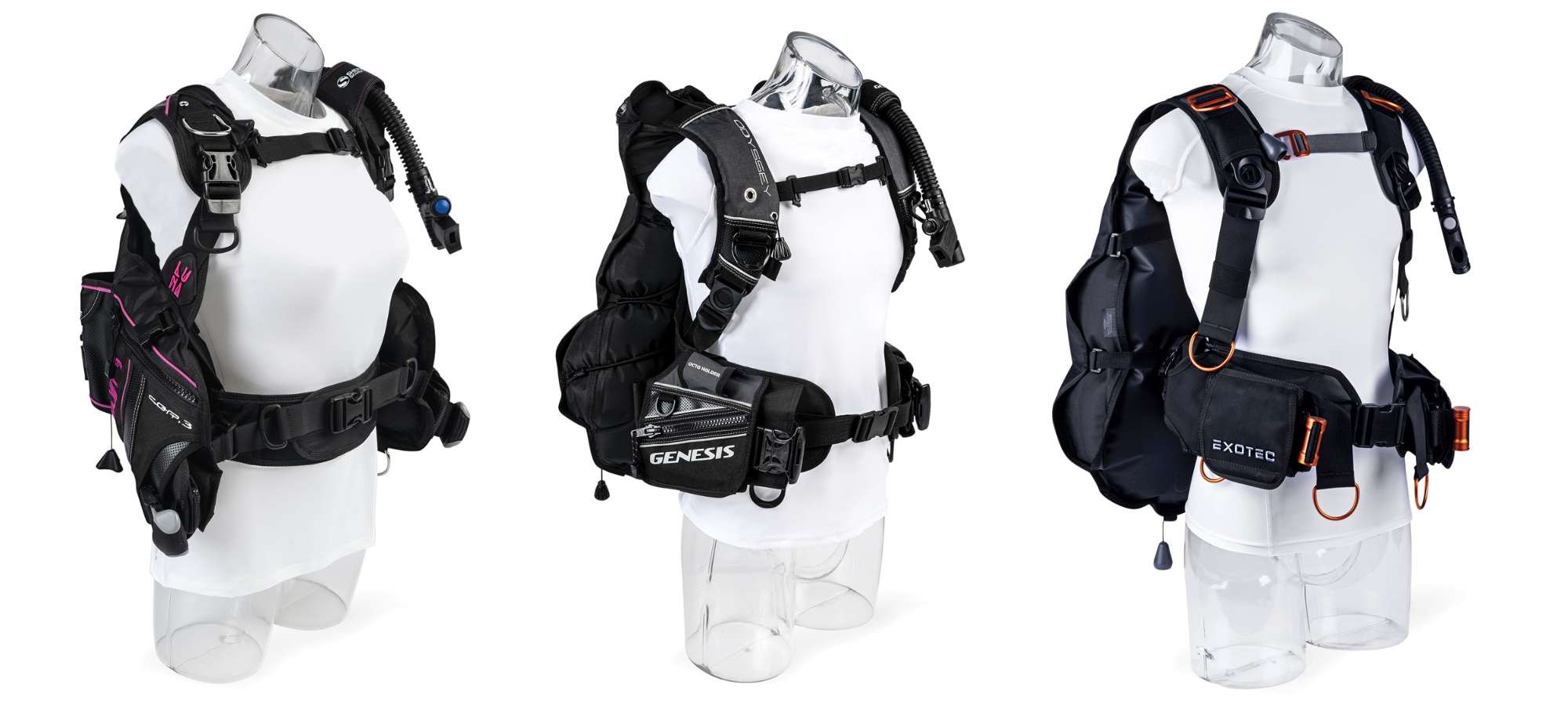Many of the cargo pockets in this year’s test underwhelmed test divers. Because of this, those systems with superior storage solutions really stood out. The ExoTec uses drop-down cargo pockets to minimize bulk and maintain trim when not in use. Despite their fold-up design, the pockets’ shape is large enough for a variety of accessories and offers wide, easy access. The Avid makes use of large metal D-rings, and perhaps more importantly, places them prominently in easy-to-reach locations.
