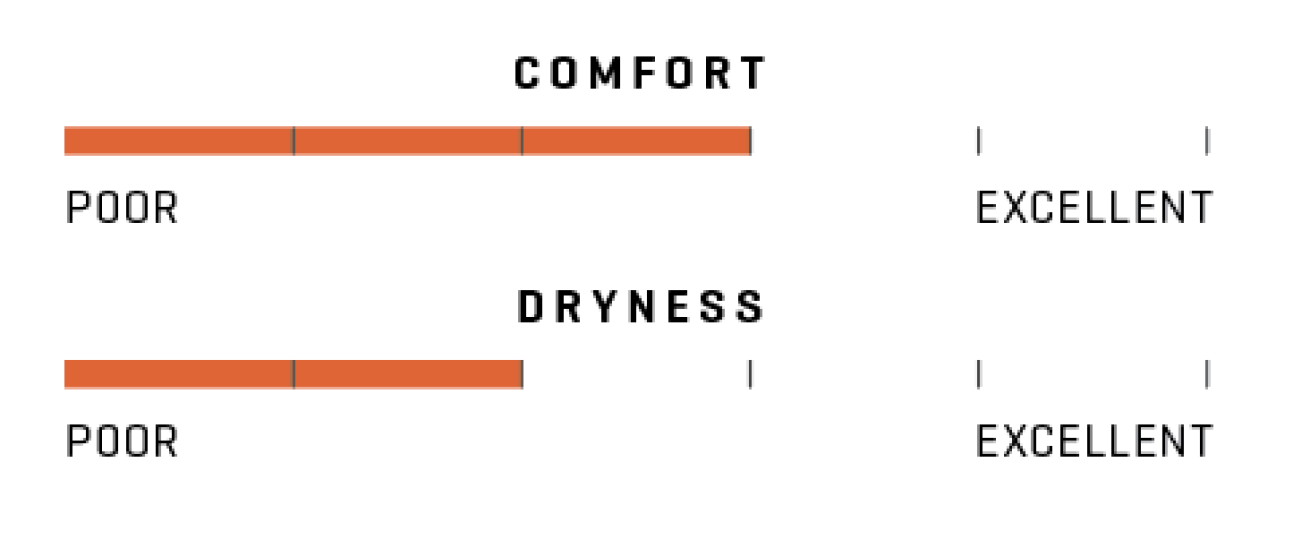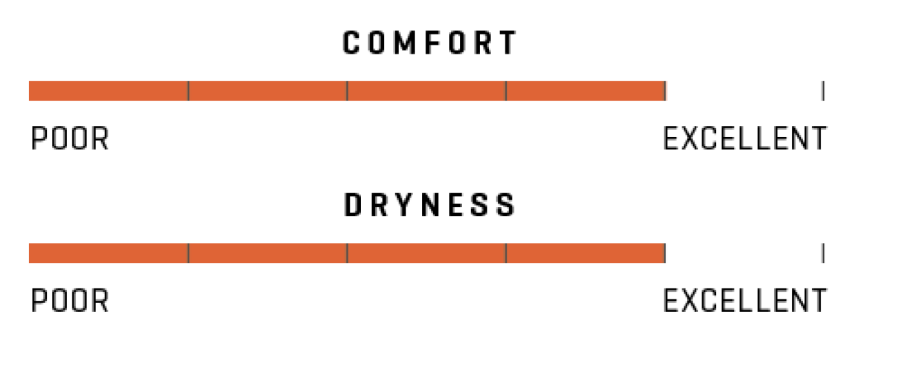 This compact mask had testers divided. The stiff, thinedged skirt was uncomfortable and less than effective for some. Other divers described it as “like it was made for me” and “super dry in all positions.” The resulting scores landed somewhere in the middle, highlighting all-around good performance. The mask scored good for ease of equalizing and clearing, but divers noted that it wasn’t as easy to clear as its low internal volume would suggest. The mask provides a good field of view. Large buttons on the buckles make for easy adjustment, even while wearing gloves.