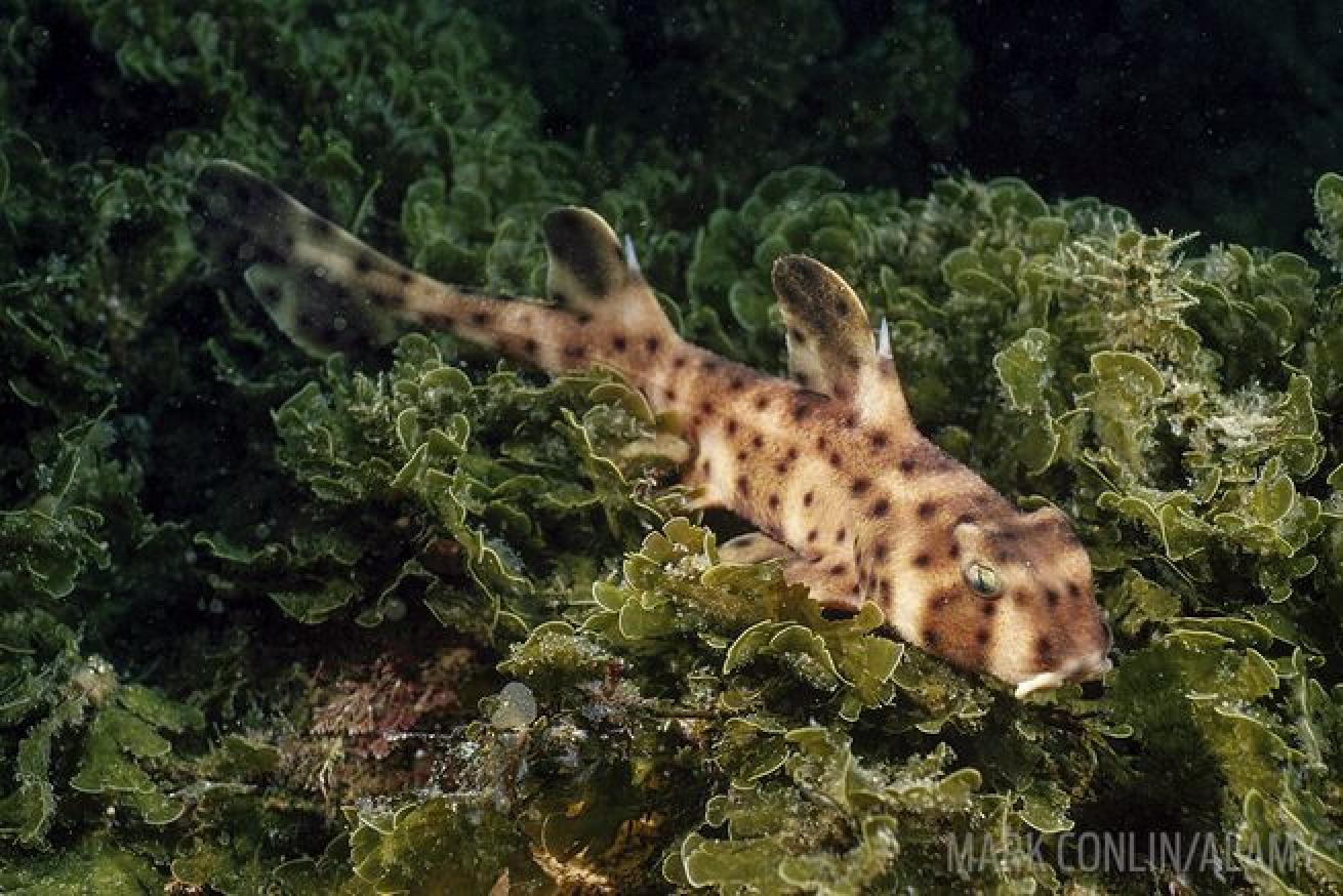 Mark Conlin/AlamyThe horn shark, which is a clumsy swimmer that prefers to use its flexible, muscular pectoral fins to push itself along the bottom, will move quickly if disturbed.