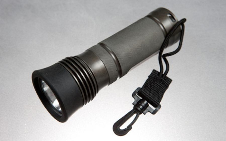 Bright and robust dive torch (flashlight) featuring a 10W LED, rechargeable battery, and an efficient and focused spot reflector. The STRYKR torch features a high lumen output which can be adjusted to one of three power levels or constantly flashed in strobe mode. The torch is machined in the USA from aluminum and finished with robust hard anodize finish.