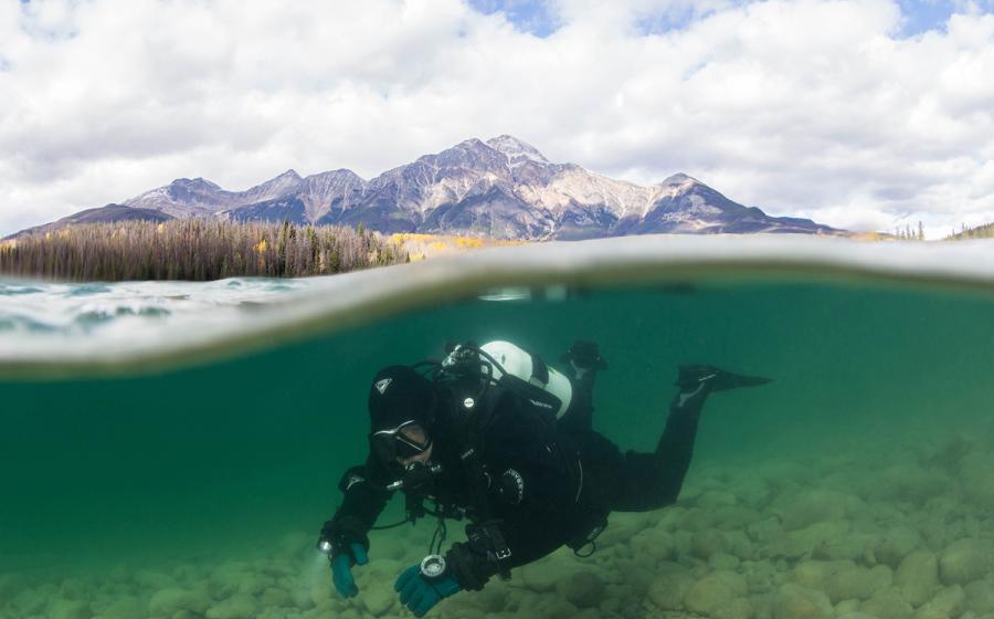 Husband and wife diving duo detail their alpine scuba diving adventures in two of Canada's most famous parks – Banff and Jasper National Park.