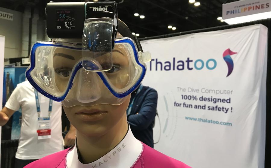 The new scuba diving computer Māoï by Thalatoo offers a heads-up display, bringing pertinent dive information right in front of your eyes.