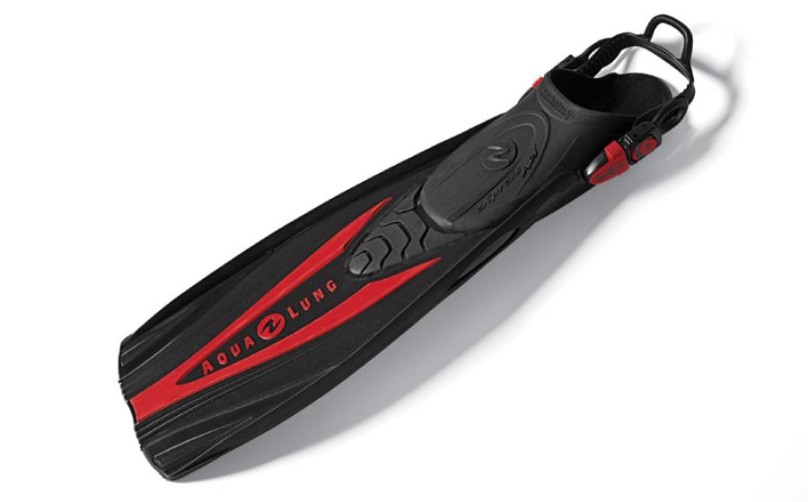 The Hotshot is part of Aqua Lung’s new line of travel gear. It’s a real rocket fin whose multiple kicking characteristics give it a lot of versatility.