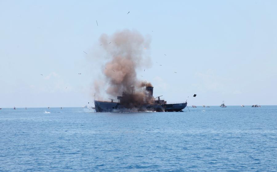 The SS Mohawk was sunk off the coast of Sanibel Island, Florida, on July 2, to be made into an artificial reef for scuba divers.