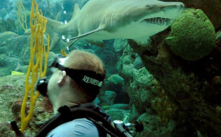 Dive with the Sharks provides a unique opportunity for certified SCUBA divers, age 15 and older, to come face-to-face with live sharks! Dive into the Aquarium's largest tank, the Coral Reef Exhibit; warm clear water, teeming with massive sharks, moray eels, barracuda a green sea turtle and more!