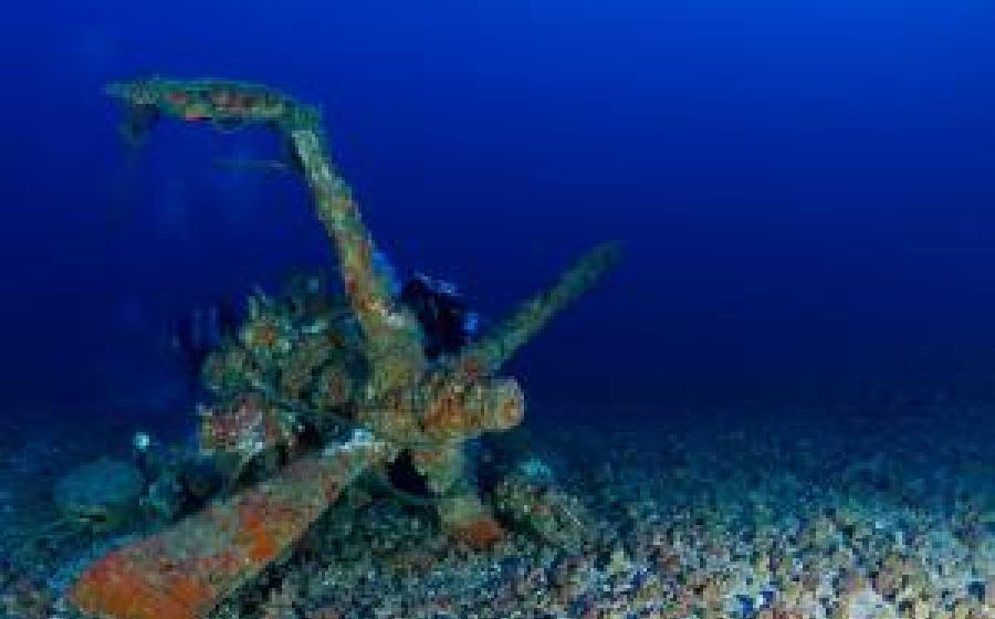 Divers spot an aircraft wreck; jumping sharks; and the colors of Indonesia.