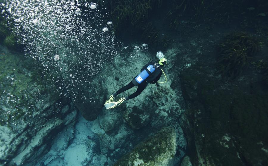 Underwater mazes, clear, rushing fresh water and natural light shows feed the urge to submerge.
