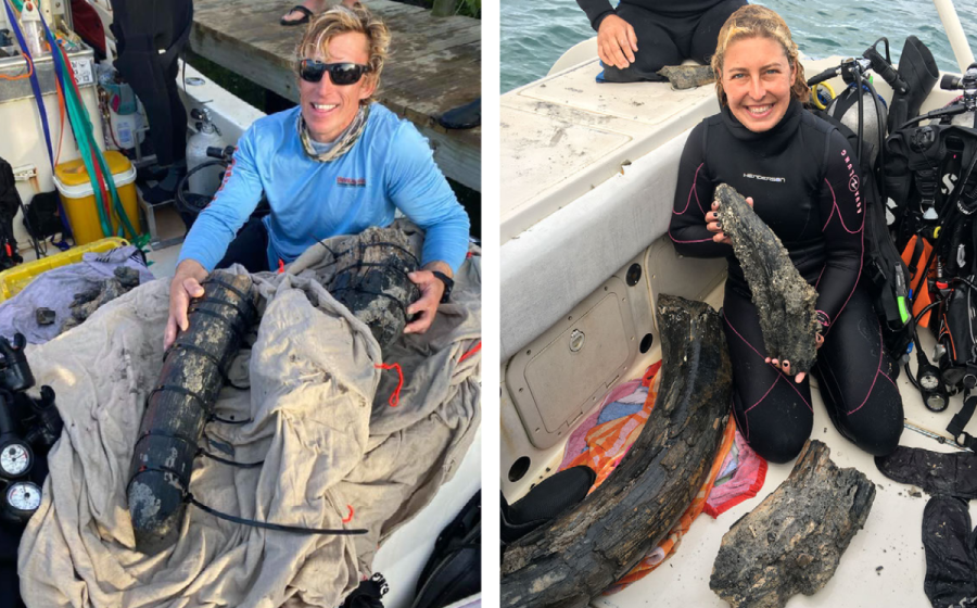 Divers Blair Morrow and Ryan Picou discovered two mammoth tusks in the Gulf of Mexico while on a scuba charter.