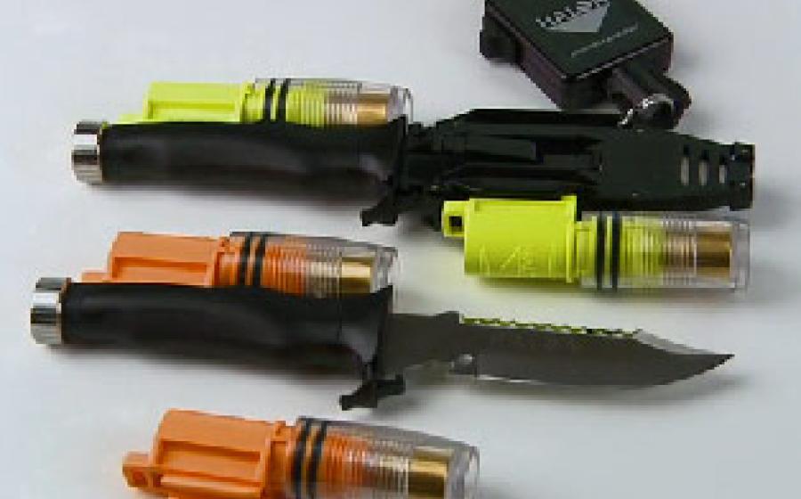 This serious dive tool uses a modular, interchangeable design so divers have a system that’s easy to use, no matter the environment. The knife offers a choice of a sharp drop-point or blunt-tip blade made from a hardened stainless steel alloy, making it durable and rust-resistant.