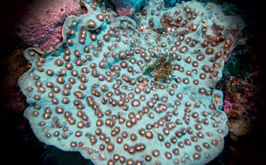 Learn how to identify key coral species like the *Mycedium Elephantotus* coral, more commonly known as elephant nose coral.