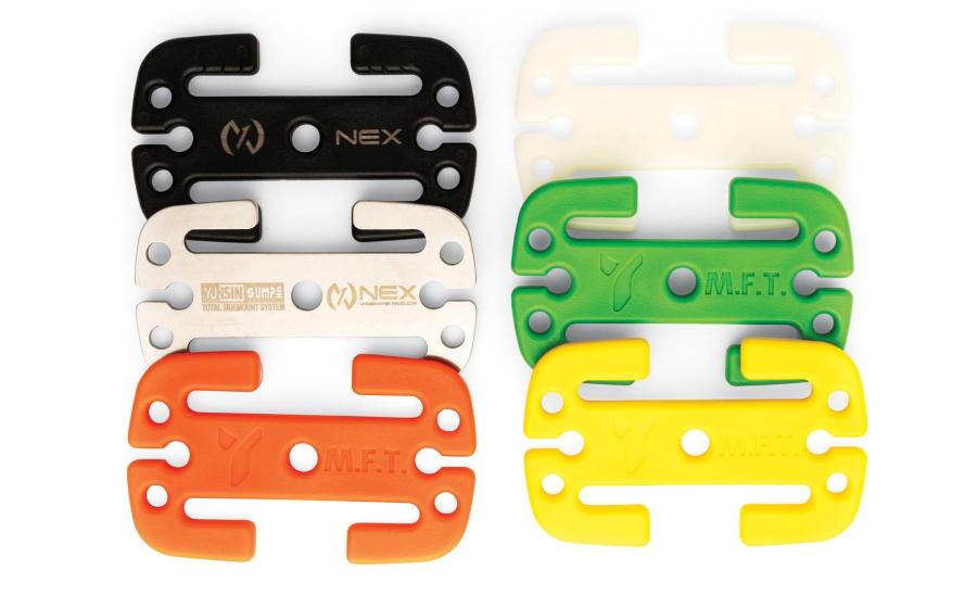 Lightweight aluminum plate in two sizes and four colors for personalized fit and style.